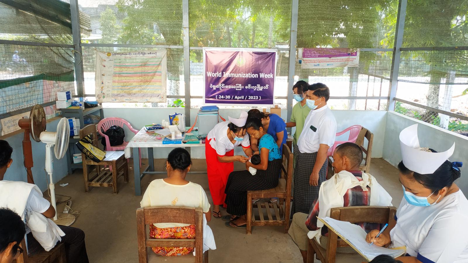 ကာကွယ်ဆေး ထိုးနှံ/တိုက်ကျွေးခြင်းကို မြို့နယ်ဆရာဝန်ကြီး ဒေါက်တာလှဝင်းကြီးကြပ်မှုဖြင့် ကျန်းမာရေးဝန်ထမ်းများက ပြည်သူ့ကျန်းမာရေးဦးစီးဌာနလက်အောက်ရှိ မိခင်နှင့်ကလေး ကျန်းမာရေးဌာနခွဲ၊ ကျေးလက်ကျန်းမာရေးဌာနနှင့် ဌာနခွဲများတွင် မွေးကင်းစကလေးငယ်များနှင့် ကာကွယ်ဆေးထိုးနှံရန်ပျက်ကွက်ခဲ့သော အသက် (၂) လမှ (၃) နှစ်အောက်ကလေးငယ်များအား ပြန်လည်ခေါ်ယူ၍ ကာကွယ်ဆေး ထိုးနှံ/တိုက်ကျွေးပေးခဲ့ကြသည်။