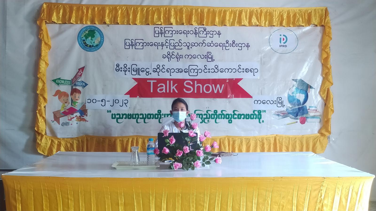 စစ်ကိုင်းတိုင်းဒေသကြီး၊ ကလေးမြို့၊ ခရိုင်ပြန်ကြားရေးနှင့်ပြည်သူ့ဆက်ဆံရေးဦးစီးဌာနတွင် သမဝါယမနှင့်ကျေးလက်ဖွံ့ဖြိုးရေးဝန်ကြီးဌာန၊ ကလေးခရိုင်ပတ်ဝန်းကျင်ထိန်းသိမ်းရေးဦးစီးဌာနနှင့် မီးခိုးမြူငွေ့ဆိုင်ရာအကြောင်း သိကောင်းစရာများ Talk Show ကို ယနေ့နံနက်ပိုင်းက လူထုအခြေပြုဗဟိုဌာန,(Community center) ၌ ကျင်းပခဲ့သည်။