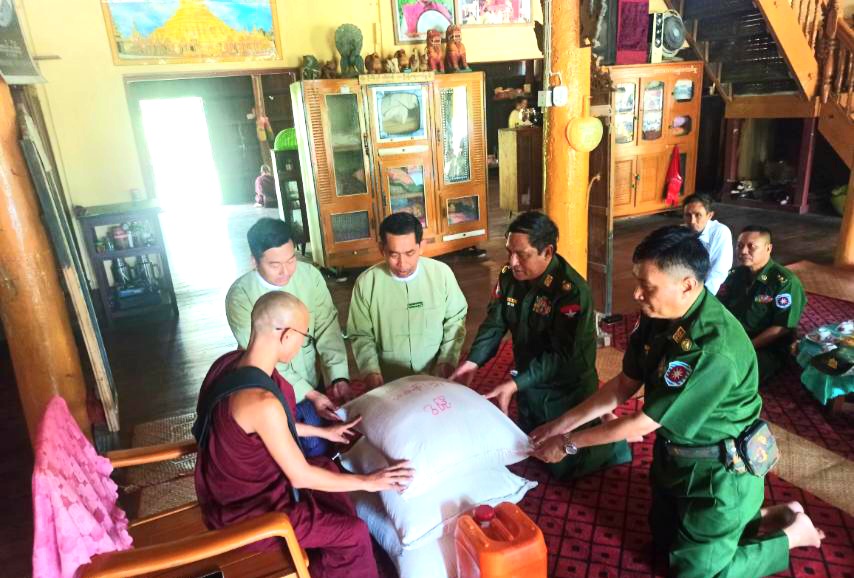 ရခိုင်ပြည်နယ်တွင် အလွန်အားကောင်းသော မိုခါမုန်တိုင်းတိုက်ခတ်မှုကြောင့် ဂွမြို့နယ်အတွင်း ပြန်လည်ထူထောင်ရေးလုပ်ငန်းများ ဆောင်ရွက်နိုင်ရန် ဗိုလ်ချုပ်စိုးနိုင်ဦး၊ ဗိုလ်မှူးချုပ် ကျော်ကျော်သန်း ဦးစီးသောအဖွဲ့က ယမန်နေ့နံနက် ၉နာရီအချိန်က ကျိန္တလီမြို့၊ ကျောက်ခေါင်းကွင်း ကျေးရွာရှိ အ.မ.ကကျောင်းအား သွပ်များထောက်ပံ့ခဲ့ပြီး နံနက်၁၀နာရီ ၅၀မိနစ်တွင် ဂွမြို့၊ ရွှေဦးကွင်းကျေးရွာရှိ ဘုန်းတော်ကြီးကျောင်း(၃)ကျောင်းအတွက် ဆန်နှင့် ဆီများ ထောက်ပံ့ပေးအပ်မှုများ ပြုလုပ်ခဲ့ကြသည်။