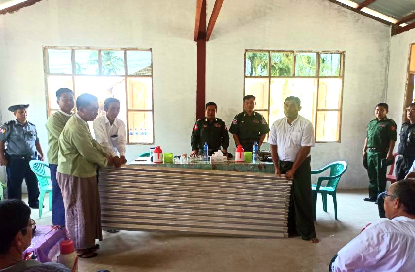 ထိုသို့ ထောက်ပံ့ပေးအပ်ရာတွင် ဗိုလ်ချုပ်စိုးနိုင်ဦး၊ အနောက်ပိုင်းတိုင်း စစ်ဌာနချုပ်မှ ဗိုလ်မှူးချုပ် ကျော်ကျော်သန်း၊ ခရိုင်စီမံအုပ်ချုပ်ရေးအဖွဲ့ ဥက္ကဋ္ဌ ဦးမျိုးချစ်နှင့်အဖွဲ့ဝင်များ၊ မြို့နယ် စီမံအုပ်ချုပ်ရေးအဖွဲ့ ဥက္ကဋ္ဌ ဦးဇာနည်ကျော်နှင့်အဖွဲ့ဝင်များက စေတီကွင်းကျေးရွာအုပ်စု ကျောက်ခေါင်းကွင်းကျေးရွာ အ.မ.က ကျောင်းတွင် မိုခါမုန်တိုင်းတိုက်ခတ်စဥ်က ပျက်စီးသွားခဲ့သည့် အမိုးများအတွက် သွပ် (၇' x ၃') (၁၈၅)ချပ်ကို လည်းကောင်း၊ ရွှေဦးကွင်းကျေးရွာသို့ ရောက်ရှိပြီး ကျေးရွာရှိ သရက်တောကျောင်းတိုက်မှ ဆရာတော် ဉူးအာရစ္စအား ဖူးမျှော်ကြည်ညိုခဲ့ကြပြီး ဘုန်းတော်ကြီးကျောင်း (၃)ကျောင်း အတွက် ဆန်(၃)အိတ်နှင့် ဆီ(၁၀)ပိဿာအားလည်းကောင်း သက်ဆိုင်ရာတာဝန်ရှိသူများထံ ထောက်ပံ့ပေးအပ်ခဲ့ကြကြောင်းနှင့် ရွှေဦးကွင်းကျေးရွာအတွင်းပြန်လည်ပြင်ဆင်ရေးလုပ်ငန်းများ ဆောင်ရွက်နေမှုများအား ကြည့်ရှုစစ်ဆေးခဲ့ကြကြောင်း သိရသည်။