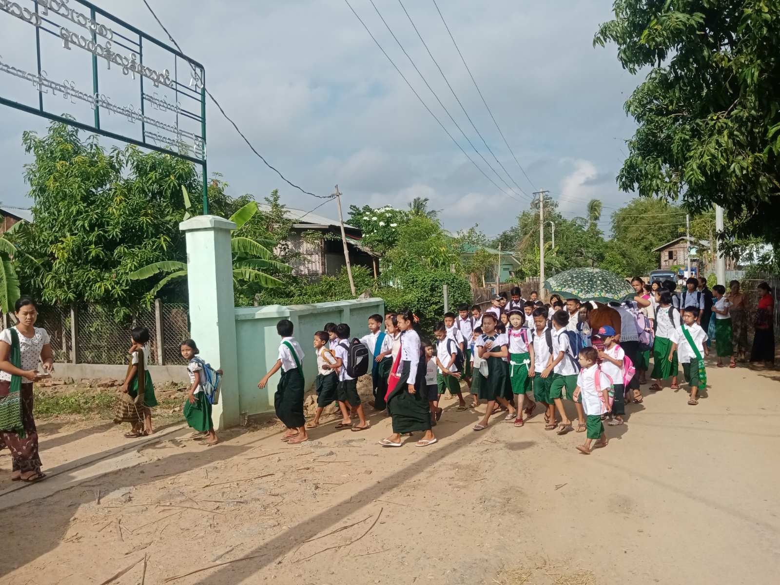 ဆရာ၊ ဆရာမများ၊ ကျောင်းသား၊ ကျောင်းသူများ၊ ကျောင်းသားမိဘများ ယာဉ်အန္တရာယ်နှင့် ဘေးအန္တရာယ်ကင်းရှင်းစေရေးအတွက် လုံခြုံရေးတပ်ဖွဲ့များ၊ မြို့နယ်အုပ်ချုပ်ရေးအဖွဲ့နှင့် တာဝန်ရှိသူများပူးပေါင်း၍ အေးချမ်းစွာပညာသင်ကြားနိုင်ရေး ဆောင်ရွက်ပေးလျက်ရှိကြောင်း သိရသည်။