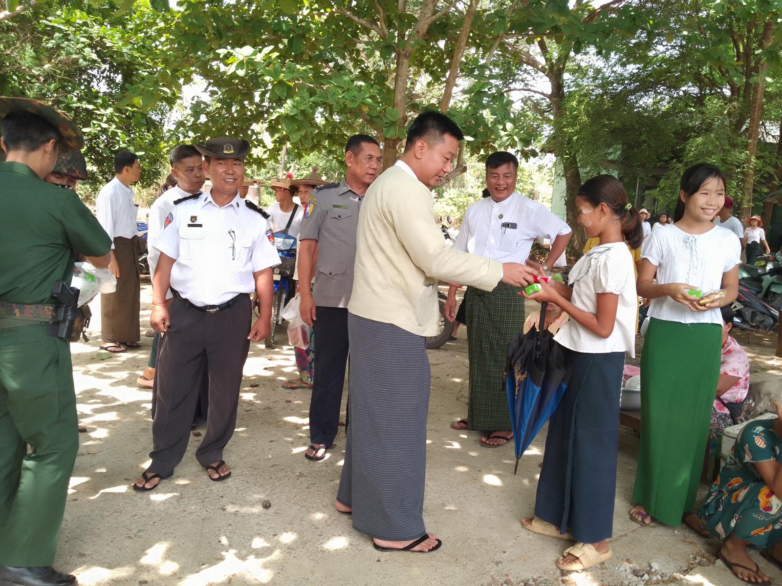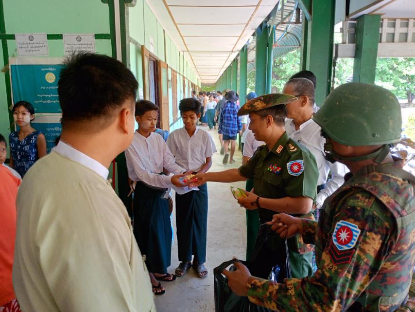 ထို့သို့ကျောင်းအပ်ခြင်းလုပ်ငန်းများ ဆောင်ရွက်ရာသို့ ယာယီနည်းဗျူဟာမှူး ဗိုလ်မှူးကြီးစောနောင်၊ မြို့နယ်စီမံအုပ်ချုပ်ရေးအဖွဲ့ဥက္ကဋ္ဌ ဦးဇာနည်ကျော်နှင့် မြို့နယ်စီမံအုပ်ချုပ်ရေးအဖွဲ့ဝင်များက အခြေခံပညာအထက်တန်းကျောင်း ဂွမြို့တွင် ကျောင်းအပ်ရန်လာရောက်ကြသည့် ကျောင်းသား၊ ကျောင်းသူများအား ပဲနို့၊ မုန့်များနှင့် ကျောင်းသုံးကွန်ပါဘူးများ ထောက်ပံ့ပေးအပ်ခဲ့ကြကြောင်း သိရသည်။