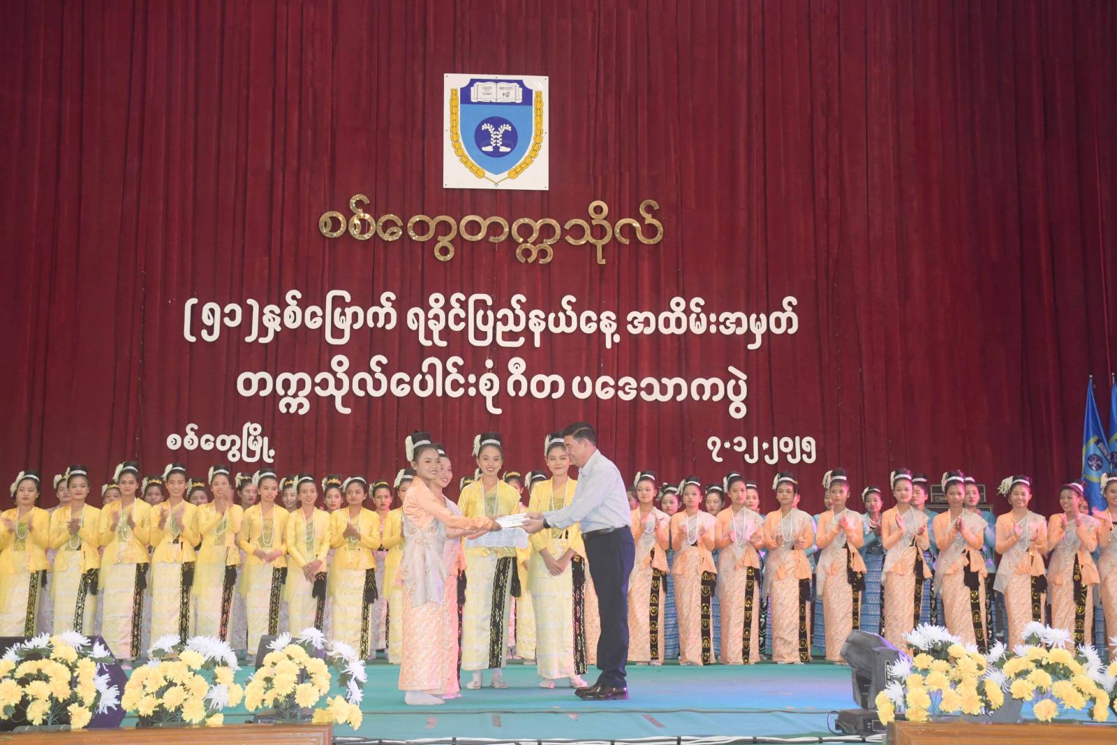 တက္ကသိုလ်ပေါင်းစုံ ဂီတပဒေသာကပွဲတွင် တက္ကသိုလ်အနုပညာအသင်းများက ယိမ်းအကအလှများဖြင့် ကပြဖျော်ဖြေကြပြီး စစ်တွေတက္ကသိုလ်၊ ကွန်ပျူတာတက္ကသိုလ်နှင့် နည်းပညာတက္ကသိုလ်များမှ ကျောင်းသား၊ ကျောင်းသူများနှင့် ဆရာ၊ ဆရာမများက တေးသီချင်းများဖြင့် သီဆိုဖျော်ဖြေကြသည်။ အလားတူ Integrated One Music Band မှ ကျောင်းသား၊ ကျောင်းသူများကလည်း တေးသီချင်းများဖြင့် သီဆိုဖျော်ဖြေပေးကြရာ ရခိုင် ပြည်နယ်ဝန်ကြီးချုပ် ဦးထိန်လင်းနှင့်ဇနီး ဒေါ်ဆွေဆွေမြတ်၊ ပြည်နယ်အစိုးရအဖွဲ့ဝင်များက ဂုဏ်ပြုချီးမြှင့်ငွေများ ပေးအပ်ချီးမြှင့်ကြကာ ပြည်နယ်ဝန်ကြီးချုပ်က ဂုဏ်ပြုအမှာစကား ပြောကြားသည်။