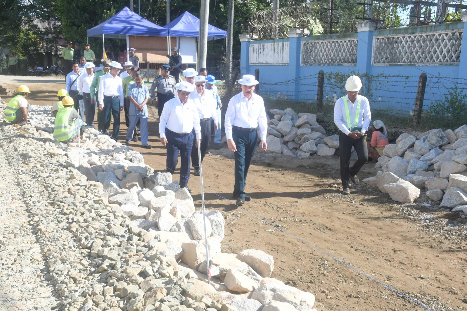 ဦးစွာ ရခိုင်ပြည်နယ်ဝန်ကြီးချုပ်နှင့်အဖွဲ့သည် နိုင်ငံတော်အကြီးအကဲ၏ လမ်းညွှန်မှုဖြင့် စစ်တွေမြို့၊ စစ်တွေလေဆိပ်သို့ အလိုတော်ပြည့်ကျောင်းရှေ့မှ ဝင်ရောက်သည့်လမ်းအား မြေသားလမ်းဖောက်လုပ်ခြင်းလုပ်ငန်း ဆောင်ရွက်နေမှုတို့ကို ကွင်းဆင်းကြည့်ရှုစစ်ဆေးကြရာ ပြည်နယ်စည်ပင်သာယာရေးအဖွဲ့၊ ညွှန်ကြားရေးမှူး ဦးကျော်မိုးက စစ်တွေမြို့၊ မြေသားလမ်း ဖောက်လုပ်ခြင်းလုပ်ငန်း ဆောင်ရွက်နေမှုနှင့်ပတ်သက်၍ တင်ပြရာ ပြည်နယ်သယံဇာတ ရေးရာဝန်ကြီးက ဖြည့်စွက်အကြံပြုရှင်းလင်းတင်ပြသည်။ တင်ပြချက်များအပေါ် ပြည်နယ် ဝန်ကြီးချုပ်က သတ်မှတ်စံချိန်စံညွှန်းအတိုင်း ပြည့်မီအောင်ဆောင်ရွက်ရေး၊ သတ်မှတ်ကာလ အတွင်း အချိန်မီပြီးစီးနိုင်ရေး၊ လုပ်ငန်းခွင်အန္တရာယ်ကင်းရှင်းရေး စနစ်တကျဖြင့် ဆောင်ရွက်သွားကြရန်မှာကြားသည်။ ဆက်လက်၍ ပြည်နယ်ဝန်ကြီးချုပ်နှင့်အဖွဲ့သည် စစ်တွေမြို့၊ စစ်တွေလေဆိပ်သို့ အလိုတော်ပြည့်ကျောင်းရှေ့မှ ဝင်ရောက်သည့် လမ်းအား မြေသားလမ်းဖောက်လုပ်ခြင်းလုပ်ငန်း ဆောင်ရွက်နေမှုအား လှည့်လည်ကြည့်ရှုစစ်ဆေးကြရာ တာဝန်ရှိသူများက လိုက်လံရှင်းလင်းပြသကြသည်။