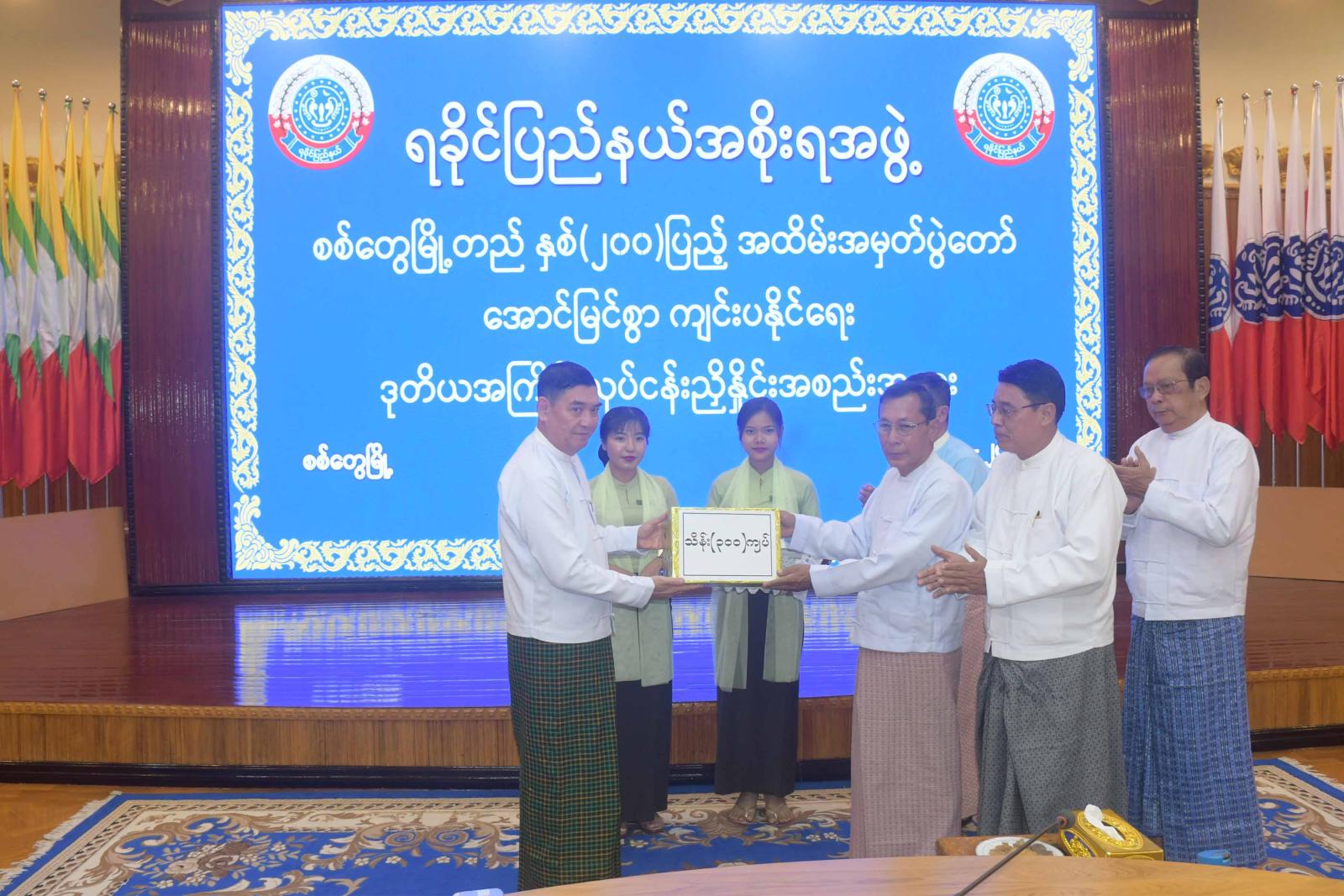 ထို့နောက် နိုင်ငံတော်ဝန်ကြီးချုပ်က စစ်တွေမြို့တည် နှစ်(၂၀၀)ပြည့် အထိမ်းအမှတ် ပွဲတော် ကျင်းပနိုင်ရေးအတွက် ချီးမြှင့်သည့် ငွေကျပ်သိန်း(၃၀၀)အား ပြည်နယ် ဝန်ကြီးချုပ်က ပေးအပ်ရာ ပွဲတော်ဖြစ်မြောက်ရေးကော်မတီဥက္ကဋ္ဌနှင့် တာဝန်ရှိသူများက လက်ခံရယူခဲ့ကြကြောင်း သတင်းရရှိသည်။
