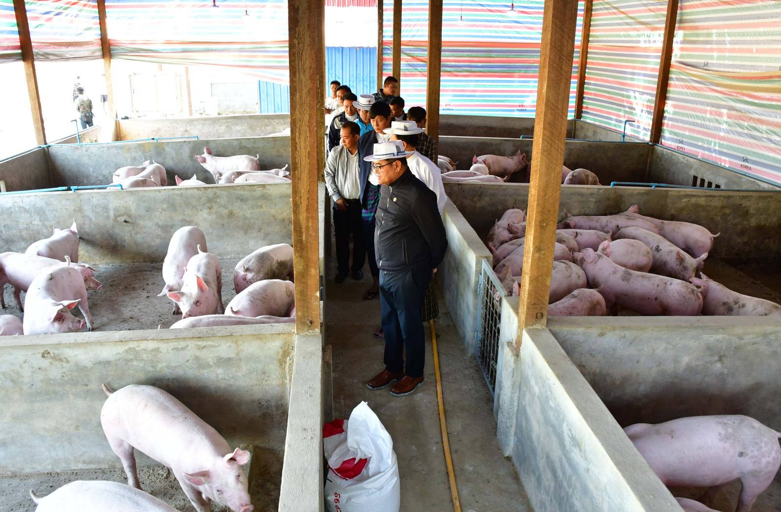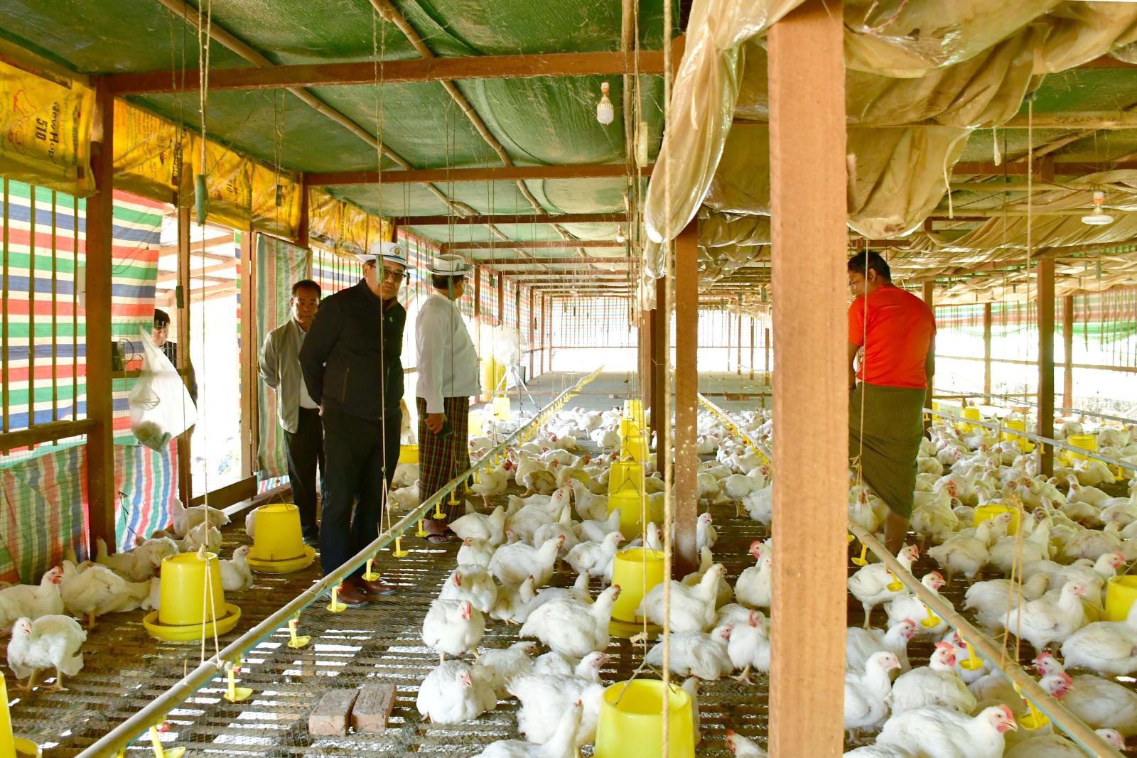 ထို့အပြင် ပြည်နယ်ဝန်ကြီးချုပ်သည် ပြည်နယ်သယံဇာတရေးရာဝန်ကြီး၊ ပြည်နယ်လူမှုရေးရာဝန်ကြီး၊ ပြည်နယ်အဆင့်ဌာနဆိုင်ရာ တာဝန်ရှိသူများနှင့်အတူ မြစ်ကြီးနားမြို့နယ် မော်ဖောင်းကျေးရွာအုပ်စု၊ ငအိုးကျေးရွာအတွင်း နိုင်ငံ့စီးပွားမြှင့်တင်ရေး ရန်ပုံငွေမတည်ပေးမှုဖြင့် စီးပွားဖြစ်မွေးမြူရေးလုပ်ငန်းအပြင် တစ်ပိုင်တစ်နိုင်စိုက်ပျိုးရေးလုပ်ငန်းများပါ လုပ်ငန်းတိုးချဲ့ဆောင်ရွက်နိုင်ခဲ့သည့် ပိုင်ရှင်ဦးဆင်ဝါးနော်၏ ခြံဝင်းအတွင်း ဝက်ခြံ (၂)ခြံ၌ အသားတိုးဝက်ကောင်ရေ (၁၅၀) မွေးမြူထားရှိမှုအခြေအနေများနှင့် ခြံဝင်းအတွင်း ပဲပုတ်(၃)ဧကနှင့် ဖူးစားပြောင်း (၁)ဧကခန့် စိုက်ပျိုးဆောင်ရွက်ထားရှိမှု၊ ဂရိတ်ဖုသီးပင်များအား ရှောက်ရိုင်းပင်ပေါ်တွင် ကိုင်းကူးစနစ်ဖြင့် ပျိုးထောင်စိုက်ပျိုးနေမှုအခြေအနေများနှင့် ကြက်ခြံ (၃)ခြံအတွင်း အသားတိုးကြက်ကြီးကောင်ရေ (၆၀၀၀)နှင့် ကြက်သား ပေါက်ကောင်ရေ (၁၅၀၀)မွေးမြူဖြစ်ထွန်းမှု အခြေအနေများနှင့် ပင်မှည့်သီး (၃၉၀)ပင်နှင့် ပျားလိမ္မော်ပင်များ ပျိုးထောင်စိုက်ပျိုးထားရှိမှုတို့ကို လှည့်လည်ကြည့်ရှုစစ်ဆေးခဲ့ကြပြီး လိုအပ်သည်များကို ဌာနဆိုင်ရာတာဝန်ရှိသူများနှင့် ညှိနှိုင်းပေါင်းစပ်ဆောင်ရွက်ပေးခဲ့ကြောင်း သိရသည်။
