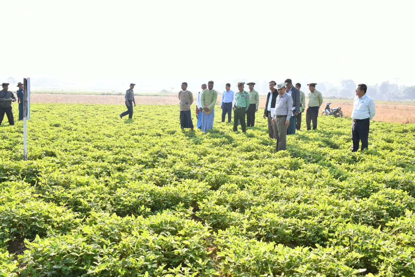 အဆိုပါကွင်းအတွင်းရှိ စိုက်ပျိုးမြေများအား မြို့နယ်စိုက်ပျိုးရေးဦးစီးဌာနမှ တာဝန်ရှိသူများက မြေအရည်အသွေး (HP) တိုင်းတားစစ်ဆေးခြင်းလုပ်ငန်း ဆောင်ရွက်နေမှုအား ကြည့်ရှုစစ်ဆေးရာ တာဝန်ရှိသူများမှ စိုက်ပျိုးမြေများနှင့်ပတ်သက်၍ ရှင်းလင်းတင်ပြခဲ့ပြီး နေပြည်တော်ကောင်စီဥက္ကဋ္ဌနှင့် တာဝန်ရှိသူများက မြေပဲစိုက်ခင်းအတွင်း ပိုးသတ်ဆေးဖြန်းနေမှုအား ကြည့်ရှုအားပေးခဲ့သည်။