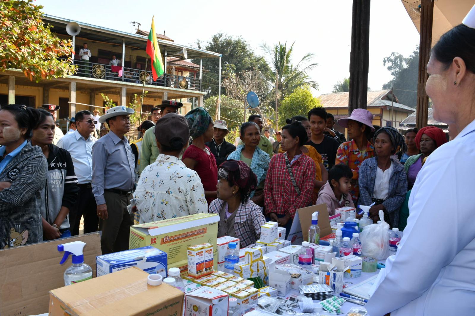 ယင်းနောက် နေပြည်တော်ကောင်စီဥက္ကဋ္ဌနှင့် တာဝန်ရှိသူများက တောင်သူများအား ရေဆင်းစပ် မျိုးနေကြာ-၁၊ ပိုက်ဆံလျှော်၊ သဘာဝမြေဩဇာနှင့် နယ်မြေခံ လုံခြုံရေးဆောင်ရွက်နေသည့် ပြည်သူ့လုံခြုံရေးနှင့် အကြမ်းဖက်နှိမ်နင်းရေးအဖွဲ့များအား စားသောက်ဖွယ်ရာများနှင့် ဆန်များပေးအပ်ခဲ့သည်။ ယင်းနောက် နေပြည်တော်ကောင်စီဥက္ကဋ္ဌ ဦးသန်းထွန်းဦးသည် အဆိုပါဘုန်းတော်ကြီးကျောင်း၌ လယ်ဝေးမြို့နယ်ပြည်သူ့ကျန်းမာရေးဦးစီးဌာနမှ ကျန်းမာရေးစောင့်ရှောက်မှုပေးနေသည့်အခြေအနေများနှင့် လူဝင်မှုကြီးကြပ်ရေးနှင့် ပြည်သူ့အင်အားဝန်ကြီးဌာန၊ ပြည်ထောင်စုနယ်မြေ၊ နေပြည်တော်၊ လယ်ဝေးမြို့နယ်ဦးစီးမှူးရုံးမှ ပန်းခင်း-၃ စီမံချက်ဖြင့် အိမ်ထောင်စုစာရင်း၊ နိုင်ငံသား စိစစ်ရေးကတ်ပြား ကွင်းဆင်းဆောင်ရွက်နေမှုအား ကြည့်ရှုအားပေးခဲ့သည်။
