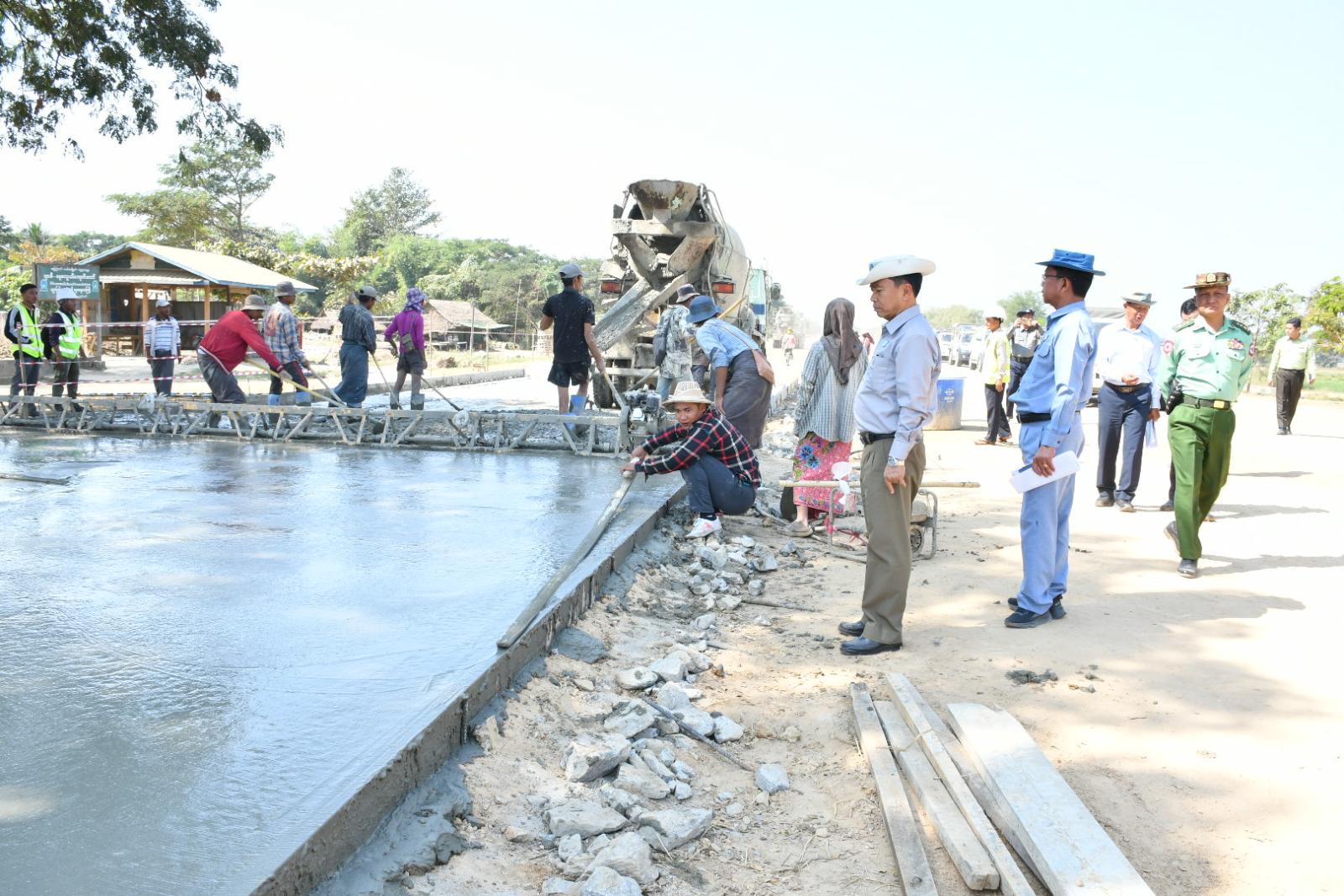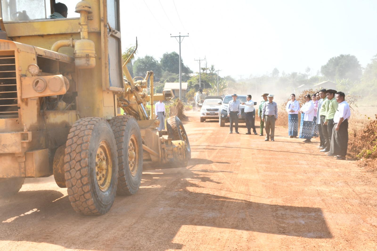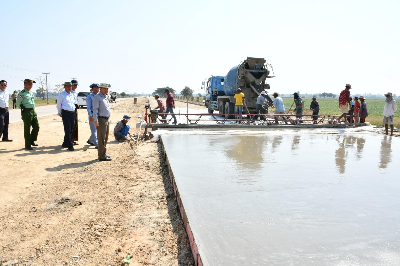 ယင်းနောက် လယ်ဝေးမြို့နယ်၊ H-1 လမ်း(ရန်ကုန်-မန္တလေးလမ်းဟောင်းမှ မြို့ရှောင်လမ်း) အထိ မူလ (၂၄ ပေ)အကျယ် (၂)လမ်းသွား ကွန်ကရစ်လမ်းမှ (၄၈ ပေ)အကျယ် (၄)လမ်းသွား ကွန်ကရစ်လမ်းအဖြစ် တိုးချဲ့ခြင်းလုပ်ငန်း ဆောင်ရွက်နေမှုအား ကြည့်ရှု့စစ်ဆေးပြီး တာဝန်ရှိသူ များအား လုပ်ငန်းများအမြန်ပြီးစီးအောင် လူအင်အား၊ စက်ယန္တရားအင်အား တိုးမြှင့်ဆောင်ရွက်ရေး၊ အရည်အသွေးပြည့်မီသည့်ပစ္စည်းများကိုသာ လုပ်ငန်းခွင်တွင်အသုံးပြုရေး၊ ငလျင်ဘေးအပါအဝင် သဘာဝဘေးအန္တရာယ် ခံနိုင်ရည်ရှိအောင် သတ်မှတ်စံချိန်၊ စံညွှန်းများနှင့်အညီ ဆောင်ရွက်ရေးတို့ကို မှာကြားခဲ့သည်။