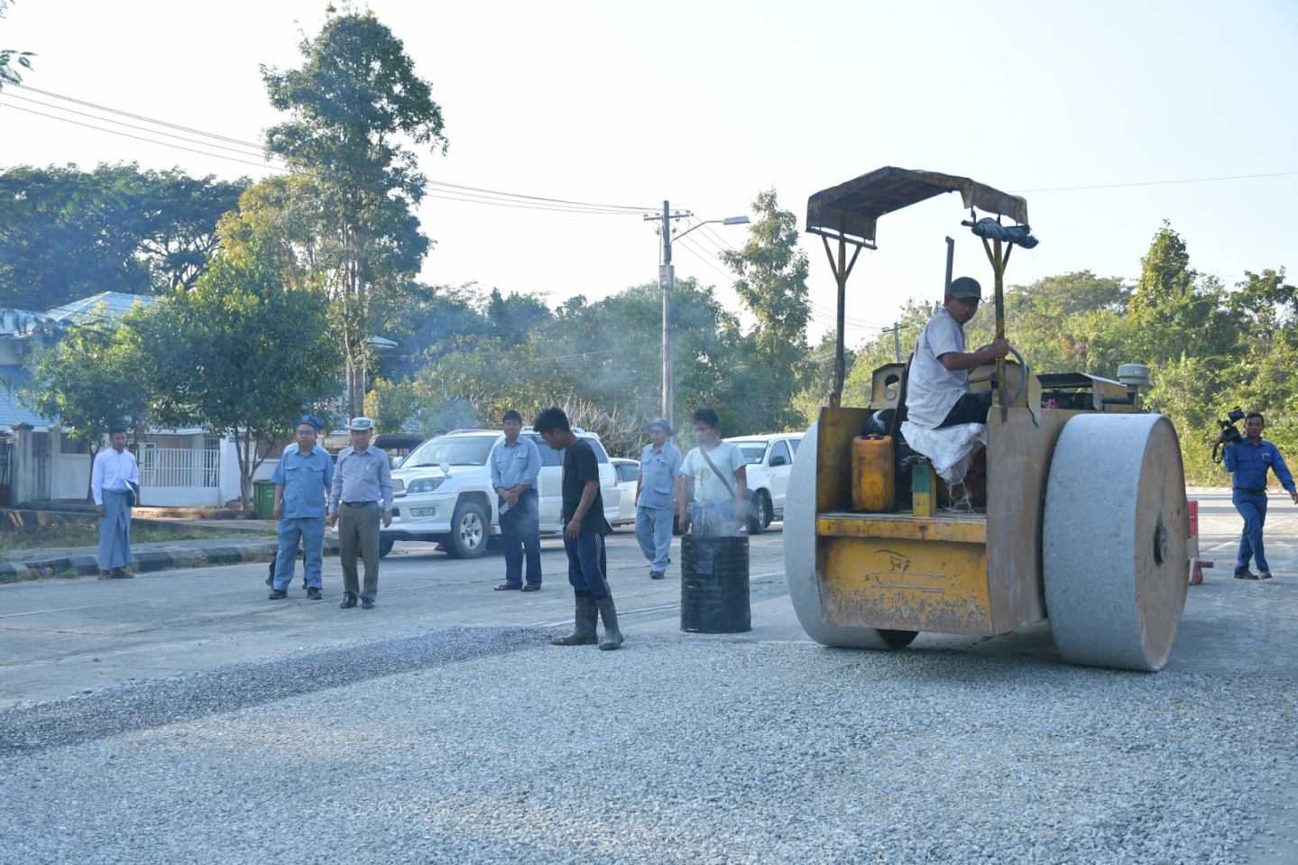 ဆက်လက်၍ နေပြည်တော်ကောင်စီဥက္ကဋ္ဌ ဦးသန်းထွန်းဦးသည် တာဝန်ရှိသူများနှင့်အတူ လယ်ဝေးမြို့နယ် ချောင်းခွကျေးရွာအုပ်စု ၂၀၂၅-၂၀၂၆ ဘဏ္ဍာနှစ် နေပြည်တော်ကောင်စီ ရန်ပုံငွေဖြင့် ဆောင်ရွက်သည့် ချောင်းခွ- ပင်ငါးမြှောင်- ချောင်းတိမ်ကျေးရွာချင်းဆက်လမ်းအား ကျောက်ရောမြေ ဖြင့်လမ်းအနိမ့်အမြင့်ဖြေ၍ ပြုပြင်ခြင်းလုပ်ငန်းအား ကြည့်ရှုစစ်ဆေးပြီး တာဝန်ရှိသူများ၏ တင်ပြချက်များပေါ် နေပြည်တော်ကောင်စီဥက္ကဋ္ဌ ဦးသန်းထွန်းဦးက လုပ်ငန်းများ သတ်မှတ်အချိန်အတွင်း အပိုင်းလိုက် အမြန်ပြီးစီးအောင်ဆောက်ရွက်ရေး၊ ရေရှည်ခိုင်ခံ့မှုရှိအောင် သတ်မှတ်စံချိန်စံညွှန်းနှင့်အညီဆောင်ရွက်သွားရန်၊ လမ်းပခုံးသားများစနစ်တကျ ဆောင်ရွက်သွားရန်နှင့် လမ်းဘေးရေမြောင်းများ စနစ်တကျ ဆောင်ရွက်သွားရန်နှင့် လိုအပ်သည်များ မှာကြားခဲ့သည်။