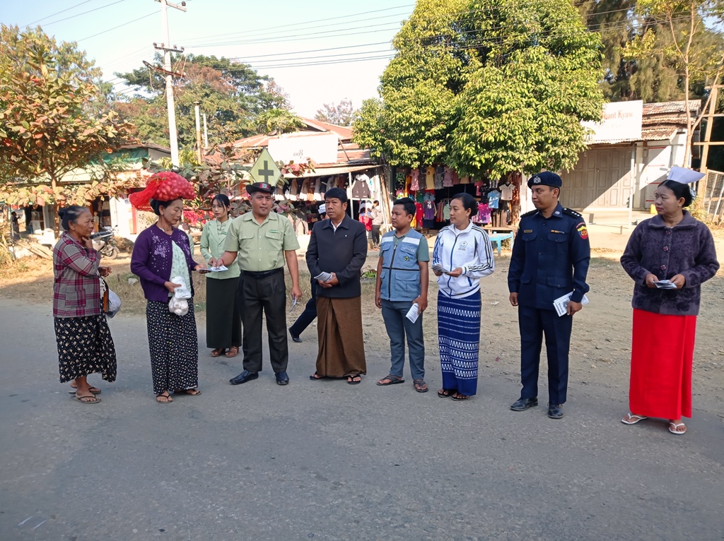 ထိုသို့ ဖြန့်ဝေသည့် မှုခင်းကြိုတင်ကာကွယ်ရေးနှင့် မှုခင်းပညာပေးလက်ကမ်းစာစောင်တွင် ရာဇဝတ်ပြစ်မှုများသည် လူမှုဘဝလုံခြုံရေးနှင့်တည်ငြိမ်အေးချမ်းရေးကို ထိခိုက်စေပြီး တရားဥပဒေစိုးမိုးရေးကို ပျက်ပြားစေနိုင်သည့်အတွက် ပြည်သူများသိရှိလိုက်နာဆောင်ရွက်ရမည့် လူသတ်မှုဖြစ်ပွားရသည့် အကြောင်းအရင်းများ၊ လူသတ်မှုမဖြစ်ပွားစေရေး ကြိုတင်ကာကွယ်ရမည့်အချက်များနှင့် ကျူးလွန်ပါက ချမှတ်နိုင်သည့်ပြစ်ဒဏ်များ၊ လောင်းကစားခြင်းများပြုပါကဖြစ်ပွားနိုင်သည့် ဆိုးကျိုးများနှင့် လောင်းကစားမှုကျူးလွန်ပါက ချမှတ်နိုင်သည့်ပြစ်ဒဏ်များ၊ မုဒိမ်းမှုကျူးလွန်ခံရနိုင်သည့်အချက်များ၊ မုဒိမ်းမှုမဖြစ်ပွားစေရန် ကြိုတင်ကာကွယ်ရမည့်အချက်များနှင့် ကျူးလွန်ပါက ချမှတ်နိုင်သည့်ပြစ်ဒဏ်များ၊ လူကုန်ကူးမှုခံရနိုင်သည့်အချက်များနှင့် ရှောင်ကြဉ်ရမည့်အချက်များ၊ လူကုန်ကူးမှုနှင့်ပတ်သက်၍ အကြံပြုချက်များ၊ ခိုးမှု/လုယက်မှုများမဖြစ်စေရေးအတွက် လိုက်နာရမည့်ချက်များ၊ အကြမ်းဖက်အုပ်စုအဖြစ် ကြေညာထားသည့်အဖွဲ့များ၊ အကြမ်းဖက်မှုဆိုင်ရာပြစ်မှုများ အပြုလုပ်မိအောင် သတိပြုရှောင်ကြဉ်ရမည့်အချက်များနှင့် အကြမ်းဖက်မှုကျူးလွန်ပါက ချမှတ်ခံရမည့်ပြစ်ဒဏ်များပါရှိပြီး ပြည်သူများအနေဖြင့် သတင်းပေးရန်နှင့် အကူအညီလိုအပ်ပါက တောင်းခံနိုင်သည့် ဖုန်းနံပါတ်များပါရှိသည့် အသိပညာပေးလက်ကမ်းစာစောင်(၂၀၀)စောင်ကို ဖြန့်ဝေပေးခဲ့ကြသည်။