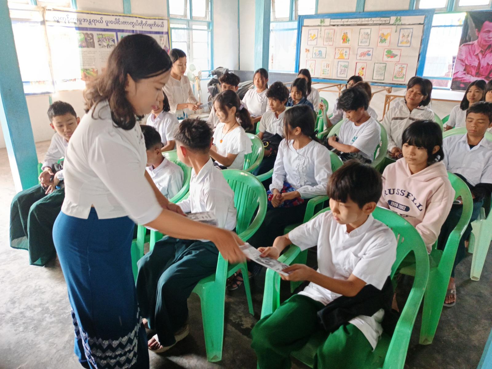 ဦးစွာ မြို့နယ်ပြန်ကြားရေးနှင့်ပြည်သူ့ဆက်ဆံရေးဦးစီးဌာန ဦးစီးအရာရှိ ဒေါ်ခင်နှင်းဆီက ကျောင်းသား၊ ကျောင်းသူများအနေဖြင့် စာပေကိုအလေးထားလေ့လာဖတ်ရှုပြီး မှတ်သားထားသင့်ကြောင်း၊ လွတ်လပ်ရေးနေ့၊ ပြည်ထောင်စုနေ့၊ တပ်မတော်နေ့နှင့် အခြားနေ့ထူးနေ့မြတ်များကို မှတ်သားထား၍ မိမိနိုင်ငံကိုချစ်မြတ်နိုးပြီးတန်ဖိုးထားတတ်သော လူငယ်လူရွယ်များဖြစ်လာစေရန် ကြိုးစားအားထုတ်သင့်ကြောင်း စသည်များ ဟောပြောဆွေးနွေးပေးခဲ့ပြီး ကျောင်းသား၊သူလေးများကလည်း သိလိုမှုများ မြန်မေးခဲ့ကြကြောင်းသိရသည်။