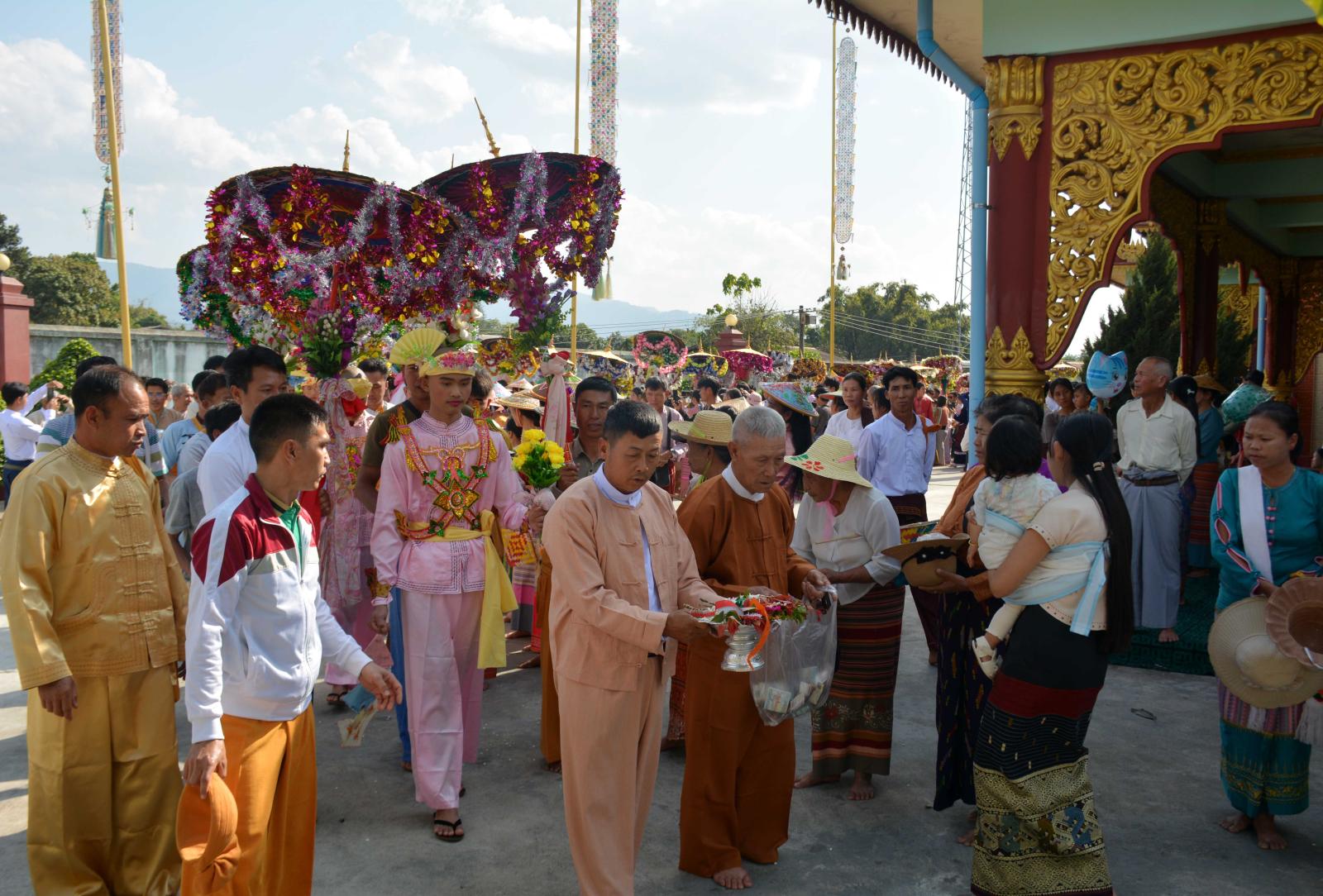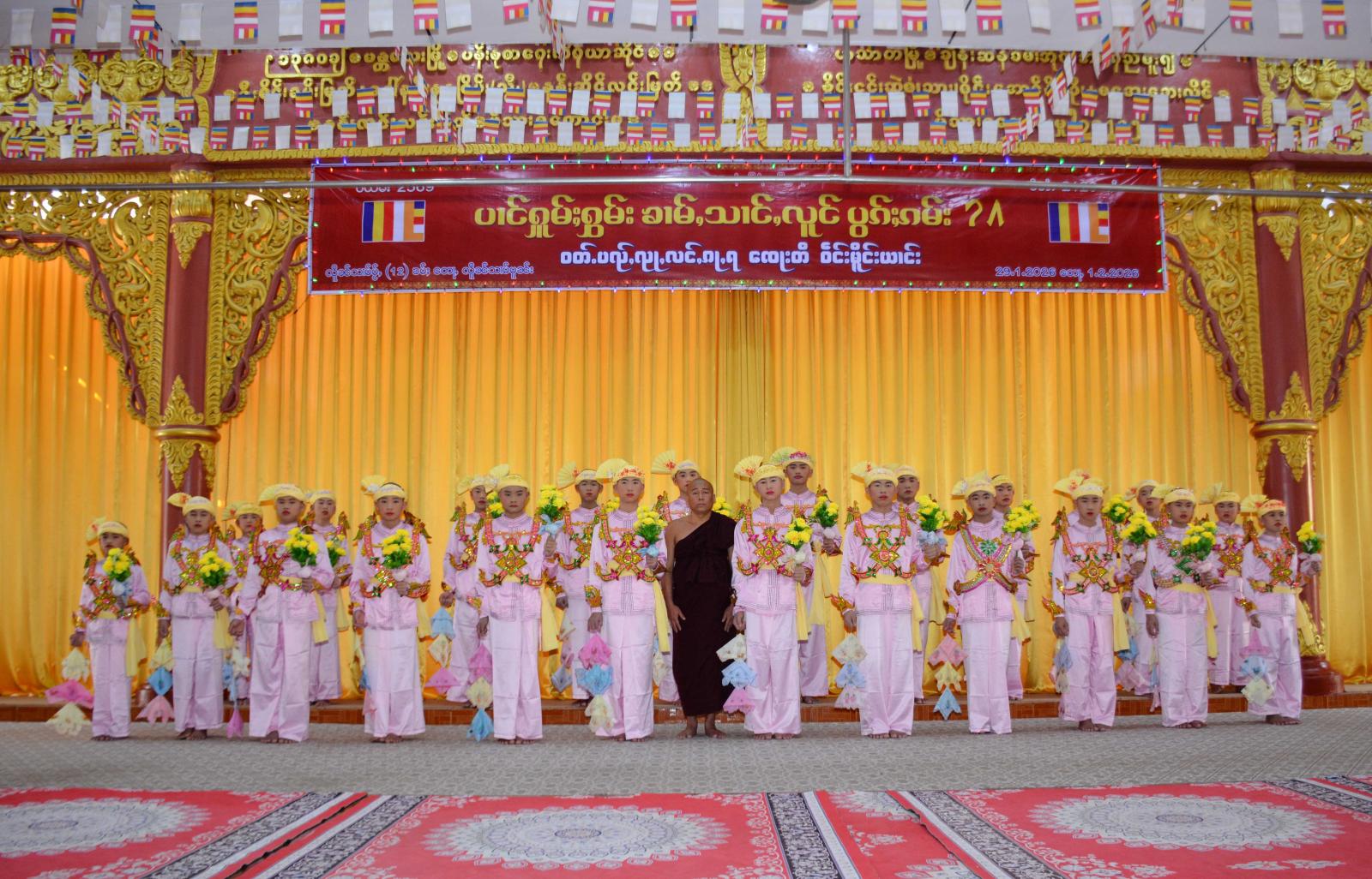 ရှင်ပြုပွဲတော်တွင် မောင်ရှင်လောင်းများအား ရှင်သာမဏေမပြုမီ ၎င်းကျောင်း၌ မောင်ရှင်လောင်းများမှ သတ်မှတ်နေရာတွင် ခဲဘွယ်စားစရာများ သုံးဆောင်နိုင်ရန်အတွက် ရှင်လောင်းများအား တန်းစီလှည့်လည်ရာတွင် ရှင်မိရှင်ဖများနှင့် ပွဲလာဧည့်ပရိတ်သတ်များက ရှင်လောင်းများအတွက် ခဲဘွယ်စားစရာများကို လောင်းလှူကြခြင်းနှင့် အလှူငွေများ ထည့်ဝင်လှူဒါန်းခြင်းများ ပြုလုပ်ကြပြီး ရှင်လောင်များမှ ခဲဘွယ်စားစရာများ သုံးဆောင်ကြပြီး ယနေ့တွင် ရှင်သာမဏေ အပါး(၂၃)ပါးကို ဆရာတော်ကြီးများအပါဝင် သံဃာတော်များမှ အဆိုပါ ရှင်လောင်းများအား ဝတ်နည်းတော်များအရ ပဗ္ဗဇ္ဇိတ ရှင်သာမဏေအဖြစ်သို့ သွတ်သွင်းချီးမြှောက် ပေးလျက်ရှိကြောင်း သိရသည်။