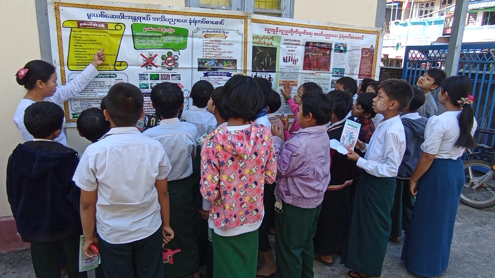 ဆက်လက်၍ မူလတန်းအဆင့် ကျောင်းသား/ ကျောင်းသူများက မိမိတို့လေ့ကျင့်ထားသော ပြည်ထောင်စုနေ့အထိမ်းအမှတ် ကဗျာများဖြင့် ဝင်ရောက်ယှဉ်ပြိုင်ခဲ့ကြရာ ပြိုင်ပွဲတွင် ပထမဆု၊ ဒုတိယဆု၊ တတိယဆုရရှိသော ကျောင်းသား၊ ကျောင်းသူများနှင့် ပြိုင်ပွဲတွင်ဝင်ရောက်ယှဥ်ပြိုင်ခဲ့ကြသော ကျောင်းသား/ ကျောင်းသူများအား တာဝန်ရှိသူများကအမှတ်တရဆုလက်ဆောင်များအသီးသီးပေးအပ်ချီးမြှင့်ခဲ့ကြ၍ (၇၉) နှစ်မြောက် ပြည်ထောင်စုနေ့အထိမ်းအမှတ် သတင်းစကားလက်ကမ်းစာစောင်များ ဖြန့်ဝေပေးခဲ့ပြီး ပြန်ကြားရေးနှင့် ပြည်သူ့ဆက်ဆံရေးဦးစီးဌာနမှခင်းကျင်းပြသထားသော သုတ၊ ရသစာအုပ်စာစောင်များနှင့် နံရံကပ်စာစောင်များအား ကျောင်းသား၊ ကျောင်းသူများက စိတ်ပါဝင်စားစွာဖြင့် ကြည့်ရှုလေ့လာခဲ့ကြောင်း သိရှိရသည်။