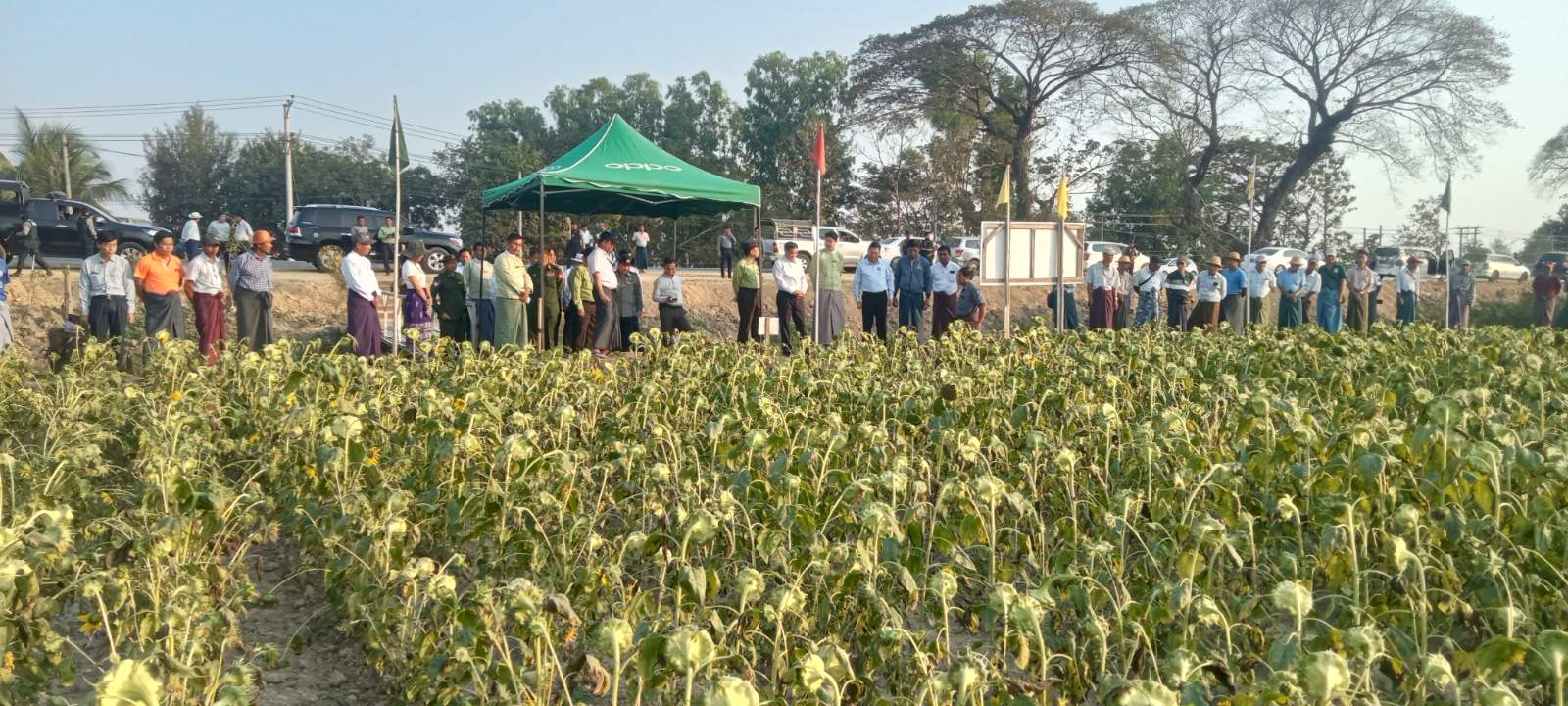 ဆက်လက်၍ ဖြစ်ထွန်းအောင်မြင်နေသည့် နေကြာစိုက်ခင်းအားလည်းကောင်း၊ ရှမ်းစုကျေးရွာ လယ်ပိုင်ရှင် ဦးထွန်းလှ၏ မြေပဲစိုက်ခင်းအားလည်းကောင်း၊ ပျဉ်းမလွင်ကျေးရွာအုပ်စု၊ ပျဉ်းမလွင်ကျေးရွာတွင် ဒေသခံတောင်သူ ဦးမြင့်အောင်၏ လယ်မြေဧက (၁၅)ဧကအတွင်း စိုက်ပျိုးထားရှိသည့် နွေစပါးစိုက်ခင်းအား ကြည့်ရှုအားပေးကာ လိုအပ်သည်များ မှာကြားခဲ့ကြောင်း သိရသည်။