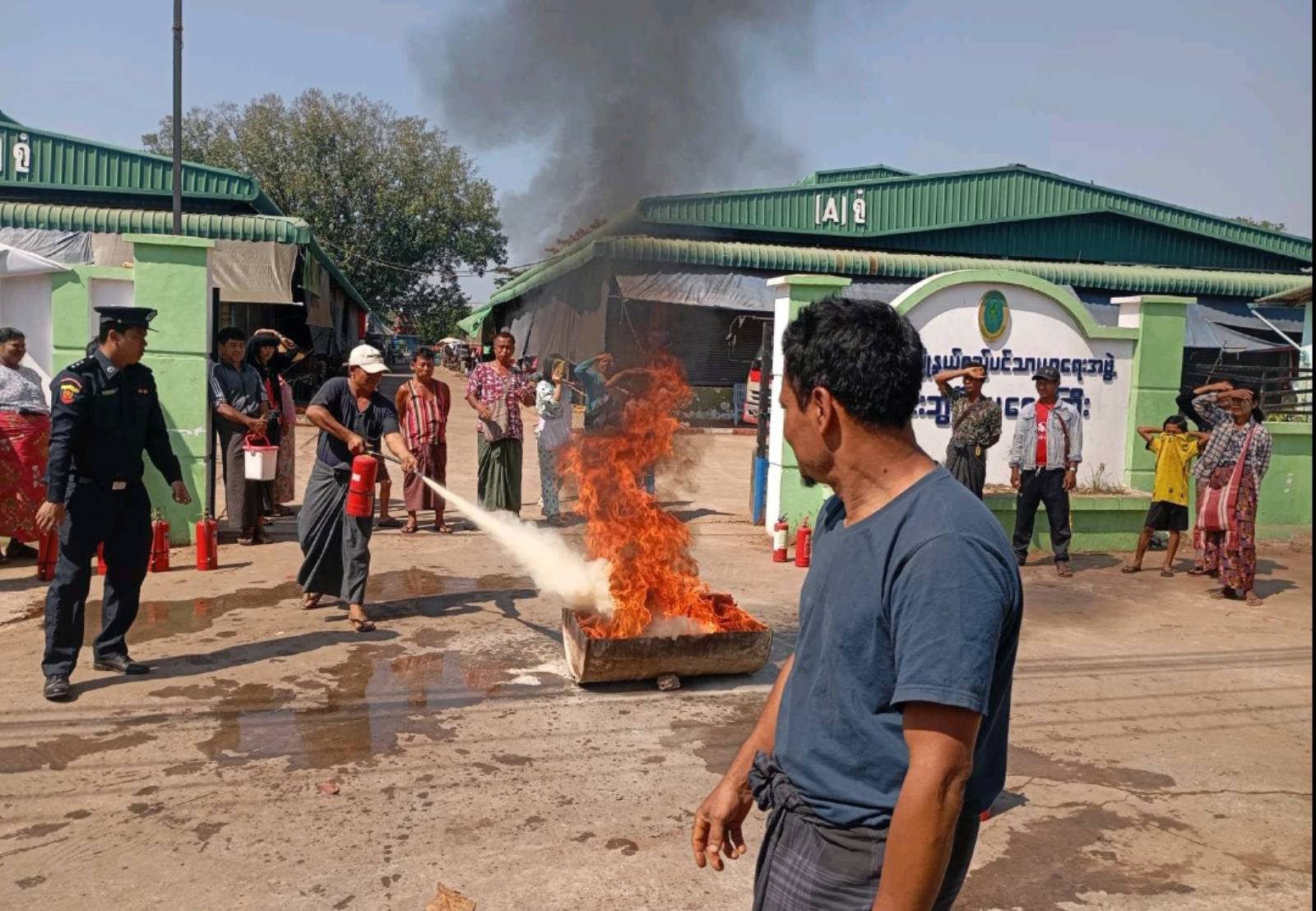 ထို့နောက် ဈေးသူ၊ဈေးသားများအား မီးသတ်ဆေးဘူးအသုံးပြုပုံ၊ မီးငြှိမ်းသတ်နည်းများကို လက်တွေ့ဆောင်ရွက်စေခဲ့ကြပြီးနောက် ဈေးသီးသန့်မီးသတ်တပ်ဖွဲ့ဝင်အင်အားတို့နှင့်အတူ မီးသတ်ရေယာဉ်မှ ရေပိုက်များဖြင့် မီးငြှိမ်းသတ်နည်းတို့ကို ဇာတ်တိုက်လေ့ကျင့်ခဲ့ကြကြောင်း သိရသည်။
