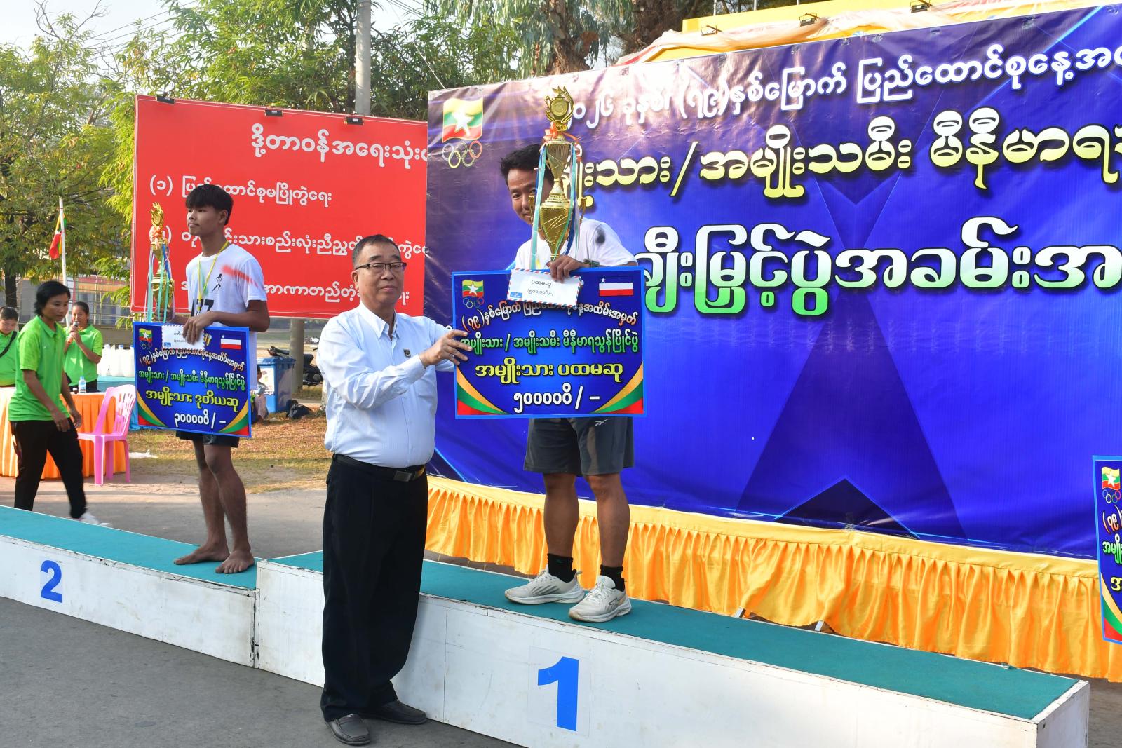 ပြိုင်ပွဲကျင်းပအပြီးတွင် ဆုချီးမြှင့်ပွဲအခမ်းအနားကို ဆက်လက်ကျင်းပရာ ပြည်နယ်အဆင့် ဌာနဆိုင်ရာများနှင့် ပြည်နယ်အစိုးရအဖွဲ့ဝင်များက အမျိုးသား/အမျိုးသမီး မီနီမာရသွန်ပြိုင်ပွဲတွင် နှစ်သိမ့်ဆု (၆) မှ (၃၀) ထိ ရရှိကြသူများအား တစ်ဦးချင်းလည်ဆွဲဆုနှင့် ငွေသားဆုများ ပေးအပ်ချီးမြှင့်ကြပြီး ပြည်နယ်လုံခြုံရေးနှင့်နယ်စပ်ရေးရာဝန်ကြီးဗိုလ်မှူးကြီး မင်းသူကျော်က အမျိုးသမီးအသက်အငယ်ဆုံး ပြိုင်ပွဲဝင်ဆု၊ အသက်အကြီးဆုံးပြိုင်ပွဲဝင်ဆုနှင့် ပဉ္စမ၊ စတုတ္ထ၊ တတိယ၊ ဒုတိယနှင့် ပထမဆု ရရှိကြသူများကို တစ်ဦးချင်းလည်ဆွဲဆု၊ ငွေသားဆုနှင့်ဆုဖလားများကို ပေးအပ်ချီးမြှင့်ပြီး ပြည်နယ်တရားလွှတ်တော်တရားသူကြီးချုပ် ဦးညွန့်လင်းက အမျိုးသား အသက်အငယ်ဆုံးပြိုင်ပွဲဝင်ဆု၊ အသက်အကြီးဆုံးပြိုင်ပွဲဝင်ဆုနှင့် ပဉ္စမ၊ စတုတ္ထ၊ တတိယ၊ ဒုတိယနှင့် ပထမဆု ရရှိကြသူများအား တစ်ဦးချင်းလည်ဆွဲဆု၊ ငွေသားဆုနှင့် ဆုဖလားများကို ပေးအပ်ချီးမြှင့်ခဲ့ကြကြောင်း သတင်းရသည်။