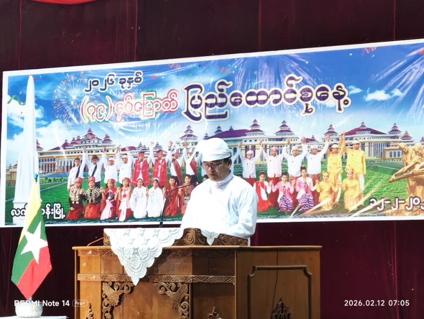 ပဲခူးတိုင်းဒေသကြီး၊ သာယာဝတီခရိုင်၊ လက်ပံတန်းမြို့၌ ၂၀၂၆ ခုနှစ်၊ ဖေဖော်ဝါရီ ၁၂ ရက်နေ့တွင် ကျရောက်သည့် (၇၉) နှစ်မြောက် ပြည်ထောင်စုနေ့အထိမ်းအမှတ် နိုင်ငံတော်အလံတင်အခမ်းအနားနှင့် နိုင်ငံတော်စီမံအုပ်ချုပ်ရေးကောင်စီဥက္ကဋ္ဌ နိုင်ငံတော်ဝန်ကြီးချုပ် ဗိုလ်ချုပ်မှူးကြီး သတိုးမဟာသရေစည်သူ သတိုးသီရိသုဓမ္မမင်းအောင်လှိုင်ထံမှပေးပို့သည့် သဝဏ်လွှာဖတ်ကြားခြင်းအခမ်းအနားကို ယမန်နေ့နံနက်ပိုင်းက ကျင်းပပြုလုပ်ခဲ့သည်။