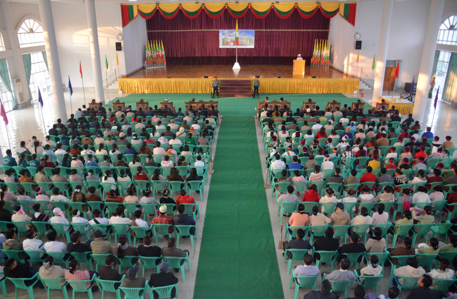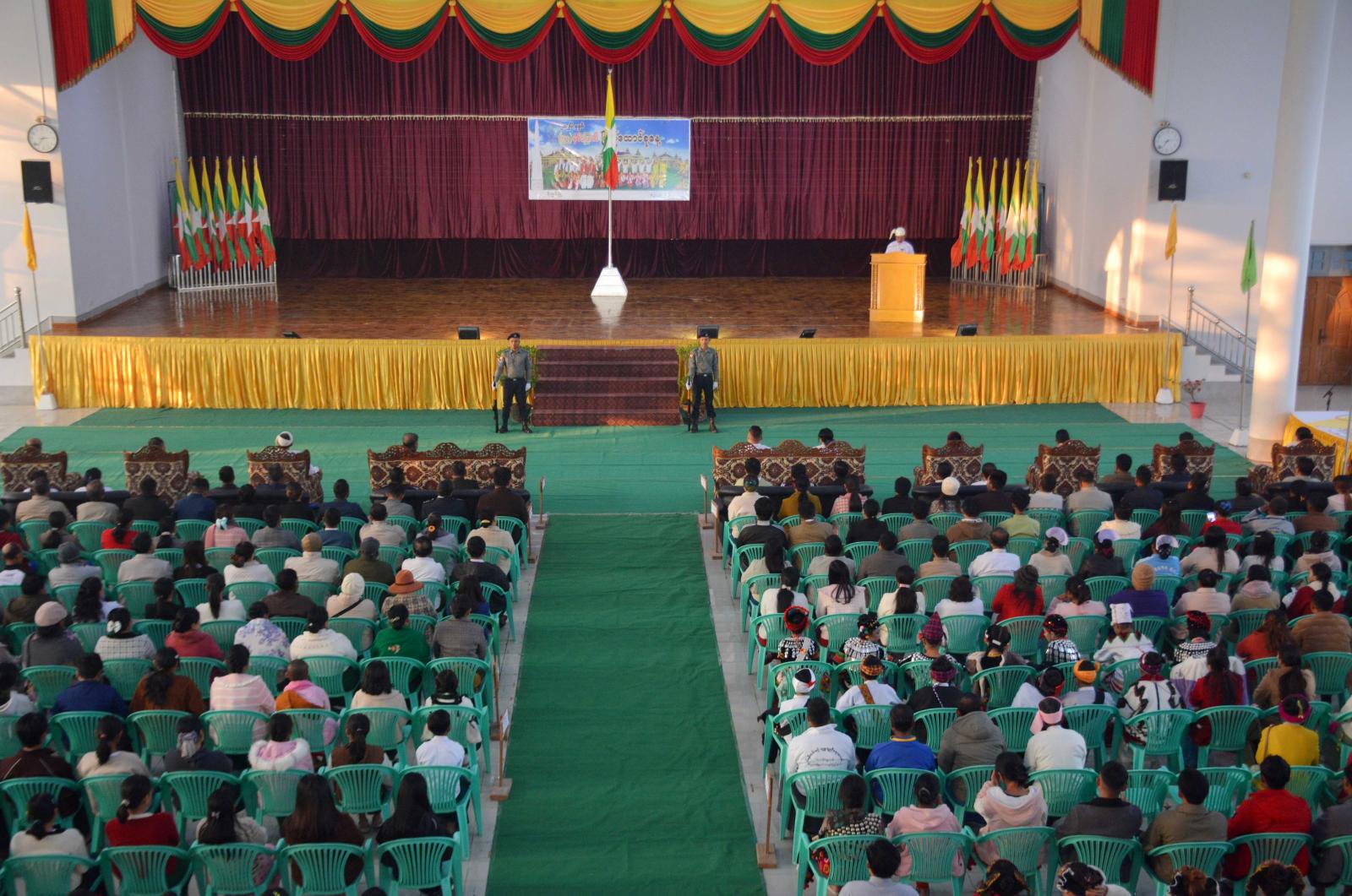 ကချင်ပြည်နယ် မိုးညှင်းခရိုင် မိုးညှင်းမြို့တွင် (၇၉)နှစ်မြောက် ပြည်ထောင်စုနေ့အထိမ်းအမှတ် သဝဏ်လွှာဖတ်ကြားခြင်း၊ ဆုများချီးမြှင့်ခြင်းနှင့် တိုင်းရင်းသာရိုးရာအကအလှများဖြင့် ကပြဖျော်ဖြေပွဲအခမ်းအနားကို ယနေ့ နံနက်(၇)နာရီက မြို့တော်ခန်းမ၌ ကျင်းပသည်။
