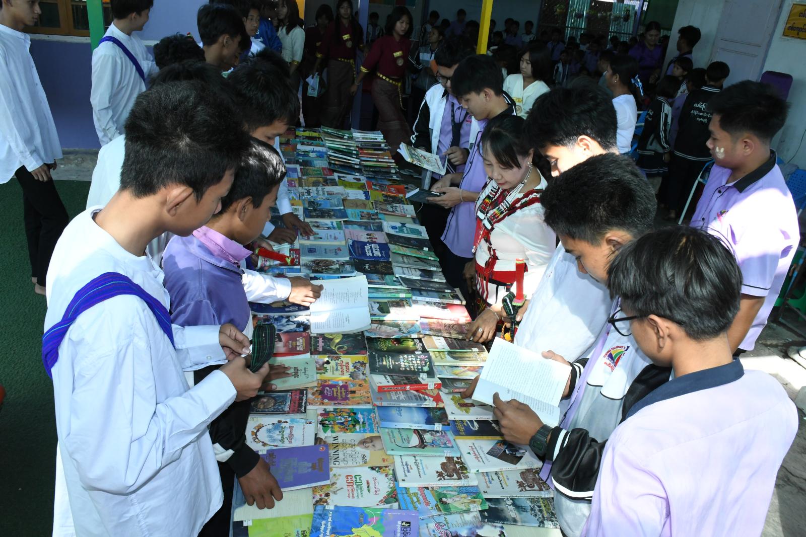 အခမ်းအနားအပြီးတွင် ကျောင်းသား/ကျောင်းသူများက ကျောက်ဆည်ခရိုင်ပြန်ကြားရေးနှင့်ပြည်သူ့ ဆက်ဆံရေးဦးစီးဌာနမှ ခင်းကျင်းပြသထားသည့် သုတ/ရသ စာအုပ်များနှင့် အသိပညာပေးနံရံကပ် စာစောင်များအား စိတ်ပါဝင်စားစွာ ကြည့်ရှုခဲ့ကြောင်း သိရသည်။