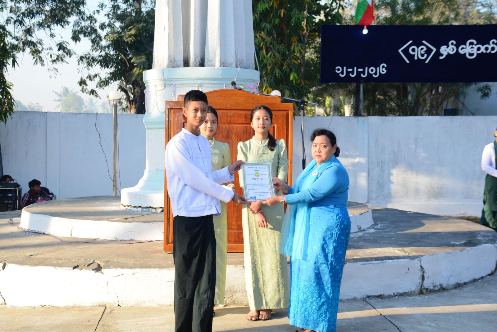 ရှေးဦးစွာ မြန်မာနိုင်ငံရဲတပ်ဖွဲ့ ဂုဏ်ပြုတပ်ဖွဲ့မှဦးဆောင်၍ မြို့နယ်စီမံခန့်ခွဲရေးနှင့်အုပ်ချုပ်ရေးကော်မတီဥက္ကဋ္ဌနှင့် အခမ်းအနားသို့ တက်ရောက်လာကြသူများက ပြည်ထောင်စုသမ္မတ မြန်မာနိုင်ငံတော်အလံအား အလေးပြုခြင်း၊ ကျဆုံးလေပြီးသော အာဇာနည်ခေါင်းဆောင်ကြီးများနှင့် ရဲဘော်အပေါင်းအား အလေးပြုခြင်းများ ဆောင်ရွက်ကြပြီး၊ ပြည်ထောင်စုသမ္မတမြန်မာနိုင်ငံတော် ယာယီသမ္မတ၊ နိုင်ငံတော်လုံခြုံရေးနှင့်အေးချမ်းသာယာရေးကော်မရှင်ဥက္ကဋ္ဌ ဗိုလ်ချုပ်မှူးကြီး သတိုးမဟာသရေစည်သူ သတိုးသီရိသုဓမ္မ မင်းအောင်လှိုင်ထံမှ ပေးပို့သော (၇၉) နှစ်မြောက် ပြည်ထောင်စုနေ့သဝဏ်လွှာအား မြို့နယ်စီမံခန့်ခွဲရေးနှင့်အုပ်ချုပ်ရေးကော်မတီဥက္ကဋ္ဌ ဦးဝင်းလှိုင်က ဖတ်ကြားသည်။ ဆက်လက်၍ (၇၉) နှစ်မြောက် ပြည်ထောင်စုနေ့ အထိမ်းအမှတ် (ထက်၊ လယ်၊ မူ)အဆင့် စာစီစာကုံး၊ ကဗျာ၊ ပန်းချီပြိုင်ပွဲများတွင် ဆုရရှိကြသော ကျောင်းသား၊ ကျောင်းသူ ၁၃ ဦးအား တာဝန်ရှိသူများက ဆုများအသီးသီးပေးအပ်ချီးမြှင့်ကြသည်။ ယင်းနောက် အခမ်းအနားတက်ရောက်လာကြသူများအား မြို့နယ်အထွေထွေအုပ်ချုပ်ရေးဦးစီးဌာနမှ ကောက်ညှင်းပေါင်း၊ ဆီထမင်းများဖြင့် ကျွေးမွေးခဲ့ကြသည်။