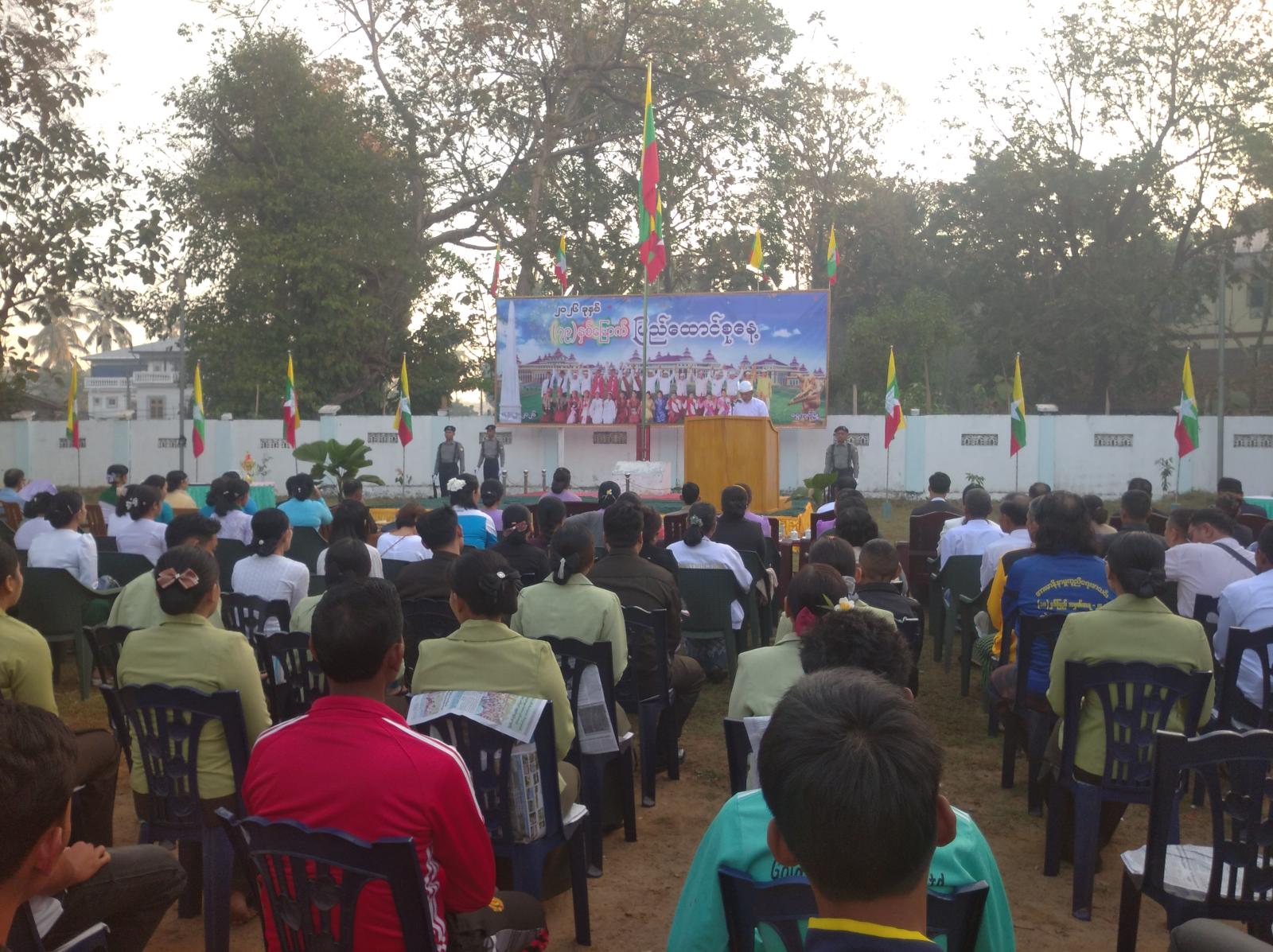 သဝဏ်လွှာဖတ်ကြားပွဲအခမ်းအနားသို့ ရဲတပ်ဖွဲ့ဝင်များ၊ မီးသတ်တပ်ဖွဲ့ဝင်များ၊ ဌာနဆိုင်ရာဝန်ထမ်းများ၊ ဆရာ/ဆရာမများနှင့် ကျောင်းသား/ကျောင်းသူများ၊ လူမှုရေးအသင်းအဖွဲ့များနှင့် ပြည်သူများ(၃၀၀)ဦးခန့် တက်ရောက်ကြကြောင်း သိရသည်။