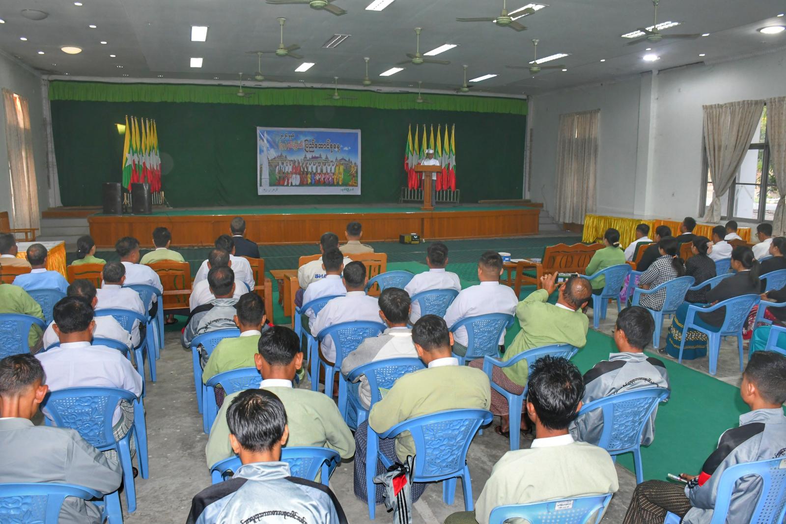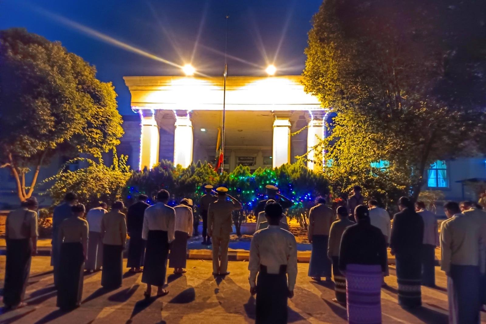 ယင်းနောက် နံနက်(၇)နာရီတွင် သဝဏ်လွှာဖတ်ကြားခြင်း အခမ်းအနားကို အဆိုပါရုံး အစည်းအဝေးခန်းမ၌ ဆက်လက်ကျင်းပရာ ပြည်ထောင်စုသမ္မတ မြန်မာနိုင်ငံတော်အလံအား အလေးပြုခြင်း၊ ကျဆုံးလေပြီးသော ခေါင်းဆောင်ကြီးများနှင့် ရဲဘော်အပေါင်းအား အလေးပြုခြင်းများ ဆောင်ရွက်ခဲ့ကြပြီး ပြည်ထောင်စုသမ္မတမြန်မာနိုင်ငံတော်ယာယီသမ္မတ နိုင်ငံတော်လုံခြုံရေးနှင့် အေးချမ်းသာယာရေးကော်မရှင်ဥက္ကဋ္ဌ ဗိုလ်ချုပ်မှူးကြီး သတိုးမဟာသရေစည်သူ၊ သတိုးသီရိသုဓမ္မ မင်းအောင်လှိုင်ထံမှ ပေးပို့သည့် (၇၉)နှစ်မြောက် ပြည်ထောင်စုနေ့ သဝဏ်လွှာအား မြို့နယ်စီမံခန့်ခွဲရေးနှင့်အုပ်ချုပ်ရေးကော်မတီဥက္ကဋ္ဌ ဦးစိန်ကြည်က ဖတ်ကြားခဲ့ပြီး အခမ်းအနား တက်ရောက်လာကြသူများအား ပြန်ကြားရေးနှင့်ပြည်သူ့ဆက်ဆံရေးဦးစီးဌာနမှ ဝန်ထမ်းများက (၇၉)နှစ်မြောက် ပြည်ထောင်စုနေ့ အထိမ်းအမှတ် လက်ကမ်းစာစောင်များ ဖြန့်ဝေပေးခဲ့ကြောင်း သိရသည်။