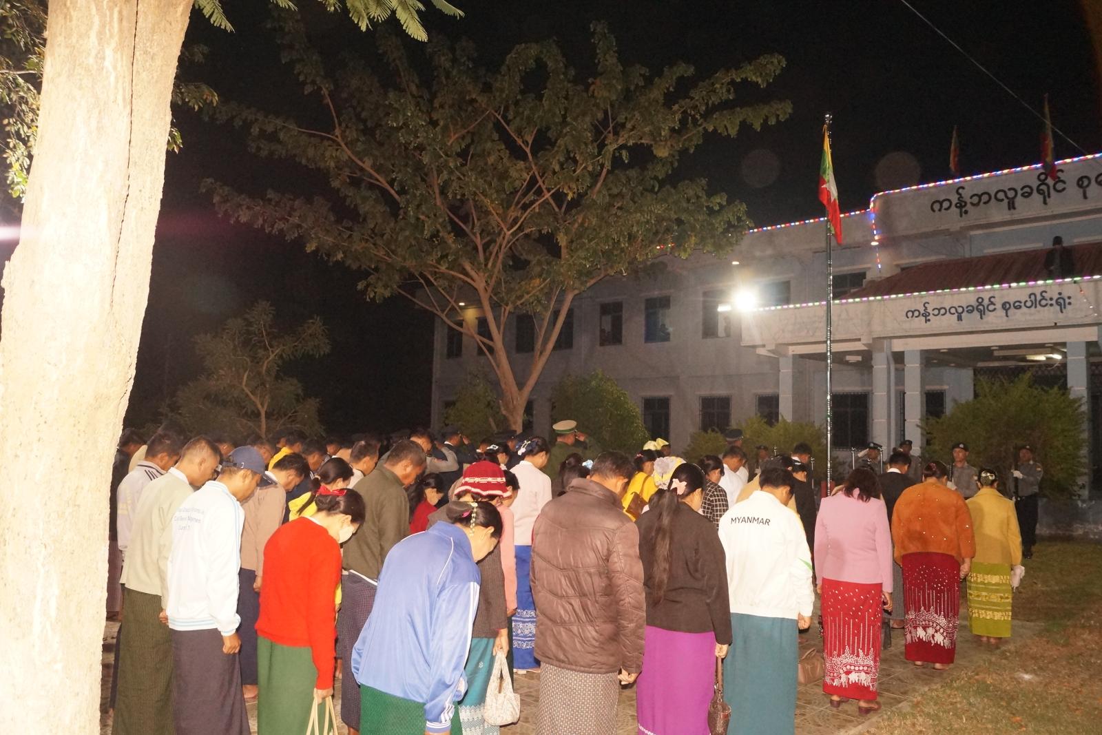 (၇၉)နှစ်မြောက် ပြည်ထောင်စုနေ့ အလံတင်အခမ်းအနားနှင့် သဝဏ်လွှာဖတ်ပွဲအခမ်းအနားကို စစ်ကိုင်းတိုင်းဒေသကြီး၊ ကန့်ဘလူခရိုင်၊ စုပေါင်းရုံး အလံတိုင်ကွင်း၌ ယမန်နေ့နံနက် ၅ နာရီခွဲက ပြည်ထောင်စုသမ္မတ မြန်မာနိုင်ငံတော်အလံကိုလွှင့်တင်ပြီး ခရိုင်စီမံခန့်ခွဲရေးနှင့် အုပ်ချုပ်ရေးကော်မတီဥက္ကဋ္ဌ ဦးကိုကိုလှိုင်နှင့်အဖွဲ့ဝင်များ၊ မြို့နယ်စီမံခန့်ခွဲရေးနှင့်အုပ်ချုပ်ရေးကော်မတီဥက္ကဋ္ဌ ဦးကျော်ခိုင်ဦးနှင့်အဖွဲ့ဝင်များ၊ ခရိုင်/မြို့နယ် ဌာနဆိုင်ရာများ တက်ရောက်အလေးပြုကြသည်။