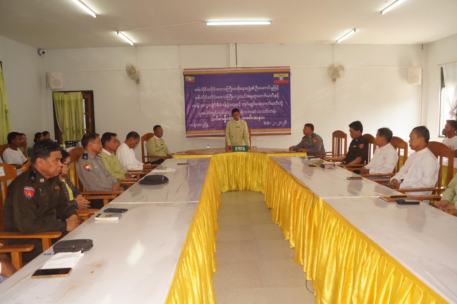 ရှေးဦးစွာ သင်တန်းဆင်းပွဲတွင် ခရိုင်စီမံခန့်ခွဲရေးနှင့်အုပ်ချုပ်ရေးကော်မတီဥက္ကဋ္ဌ ဦးကိုကိုလှိုင်က သင်တန်းဖွင့်လှစ်နိုင်ရေး ဆောင်ရွက်ခဲ့မှု အခြေအနေများအား ရှင်းလင်းပြောကြားပြီး သင်တန်းသားများအနေဖြင့် သင်တန်းမှသင်ကြားပေးသည့် ပညာရပ်များကို ဆက်လက်ဆည်းပူး လေ့လာသွားကြရန်နှင့် မိသားစု စီးပွားရေးကို တစ်ဖက်တစ်လမ်းမှ အထောက်အကူပြုနိုင်ရန် ပြန်လည်အသုံးချနိုင်အောင် ကြိုးစားသွားကြရန် မှာကြားသည်။