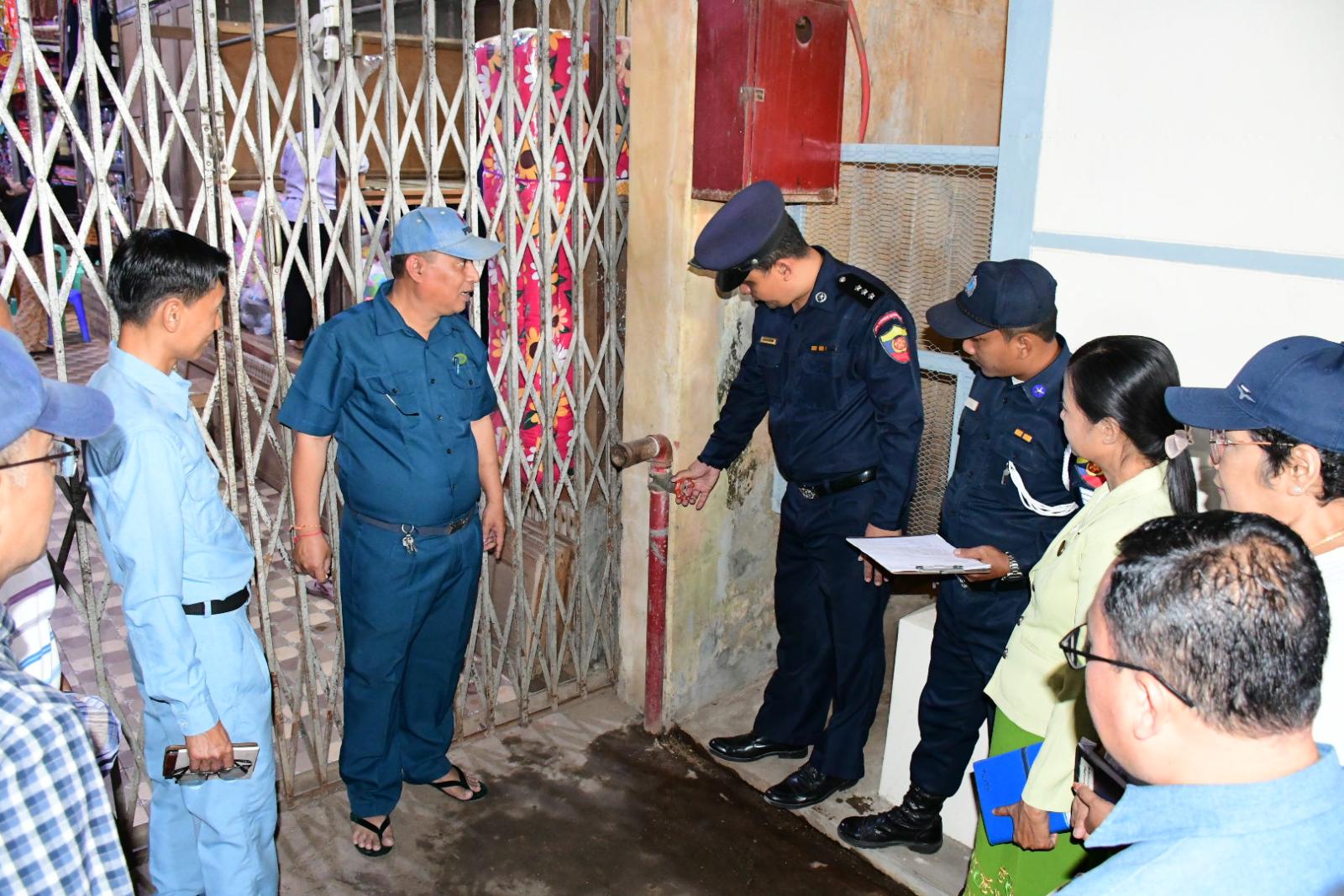 ထိုသို့ဆောင်ရွက်ရာတွင် မြို့နယ်မီးသတ်ဦးစီးမှူး ဦးကျော်လင်းစိုးနှင့် မြို့နယ်စည်ပင်သာယာရေးအဖွဲ့အမှုဆောင်အရာရှိ ဦးကျော်စွာလင်းတို့က အဆိုပါဈေးအတွင်းရှိ လျှပ်စစ်မီး မိန်းပလပ်ခုံနှင့်မီးကြိုးများစနစ်တကျသွယ်တန်းထားမှုရှိ/မရှိ အခြေအနေ၊ မီးသတ်ဆေးဘူးများ၊ အရေးပေါ်မီးသတ်ပိုက်လိုင်းများနှင့် ရေသိုလှောင်ကန်များ ကောင်းမွန်မှုရှိ/မရှိအခြေအနေတို့ကိုကြည့်ရှုစစ်ဆေးခဲ့ပြီး ပြုပြင်ရန်လိုအပ်သည်များကို ဈေးတာဝန်ရှိသူများနှင့် ဈေးသူ/ဈေးသားများအား အကြံပြုဆွေးနွေးမှာကြားသည်။