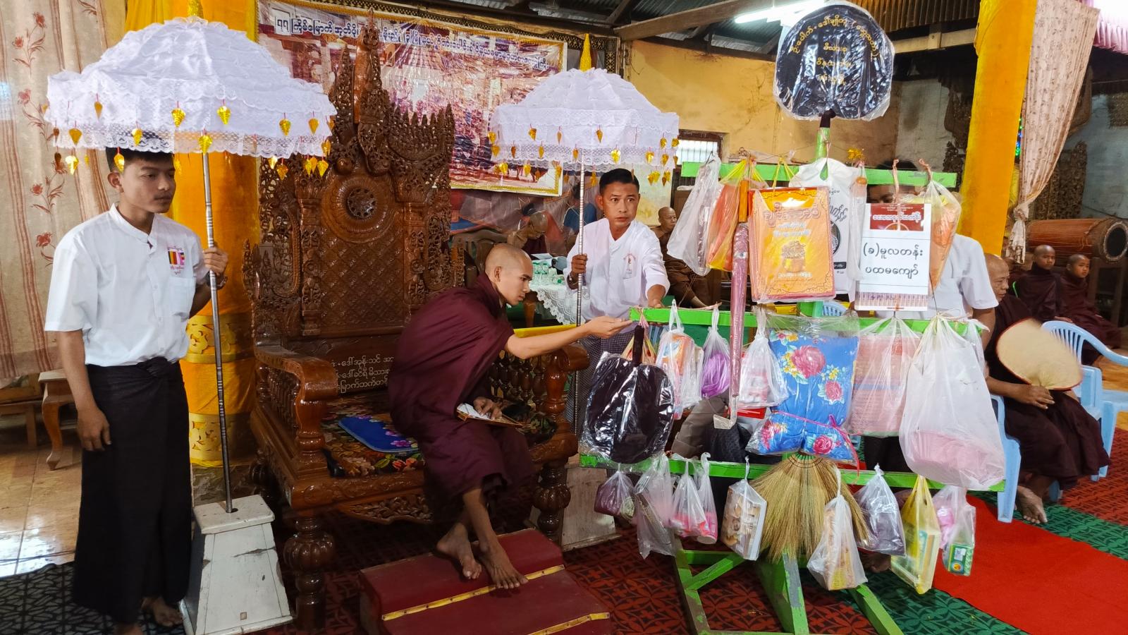ဝိနယဓမ္မာနုဂ္ဂဟအဖွဲ့ ဩဝါဒဆရာတော်များကို မြို့လယ်ဓမ္မာရုံဥက္ကဋ္ဌ ဦးဝင်းအောင်နှင့် အဖွဲ့ဝင်များ၊ အလှူရှင်များက လှူဖွယ်ပစ္စည်းနှင့် ဝတ္တုငွေများ လှူဒါန်းခဲ့ပြီး ရေစက်သွန်းချ အမျှတန်းပေးဝေခဲ့ကြသည်။