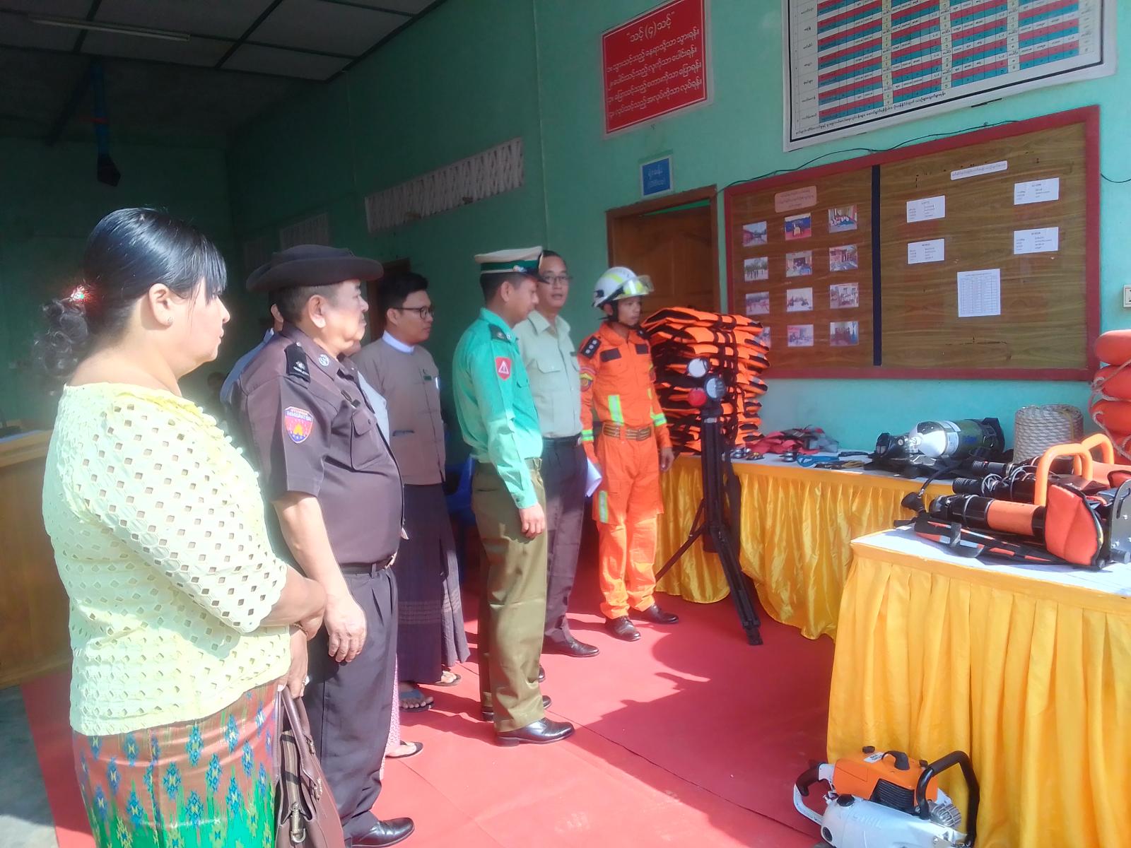 ထို့နောက် လောင်းလုံးမြို့နယ် မီးသတ်ဦးစီးဌာနမှ ဦးစီးအရာရှိ ဦးအောင်အောင်ဦးက သင်တန်းကျင်းပရခြင်း၏ ရည်ရွယ်ချက်အား ရှင်းလင်းပြောကြားပြီး စက်လှေရေယာဉ်တွင် ပါဝင်သည့် ပစ္စည်းအမျိုးအစားနှင့် တပ်ဆင်အသုံးပြုပုံအဆင့်ဆင့်များကို ခင်းကျင်းပြသမှုအား က်ရောက်လာကြသည့် တာဝန်ရှိသူများက ကြည့်ရှုအားပေးခဲ့သည်။