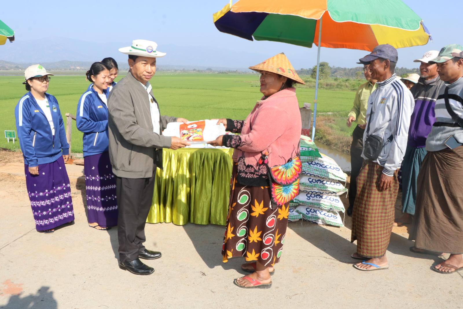 ယင်းနောက် တိုင်းဒေသကြီး ဝန်ကြီးချုပ်၊ တိုင်းဒေသကြီး အစိုးရအဖွဲ့ဝင်များနှင့် တိုင်းဒေသကြီးအဆင့် ဌာနဆိုင်ရာများက ဓာတ်မြေဩဇာနှင့် သဘာဝမြေဩ ဇာရောနှော သုံးစွဲခြင်း ကွင်းသရုပ်ပြပွဲသို့ တက်ရောက်လာကြသည့် ဒေသခံတောင်သူများအား သွင်းအားစု ဓာတ်မြေဩဇာများအား ပေးအပ်ခဲ့ကြပြီး ဒေသခံတောင်သူများအား ရင်းရင်းနှီးနှီး နှုတ်ဆက်ခဲ့ကြသည်။