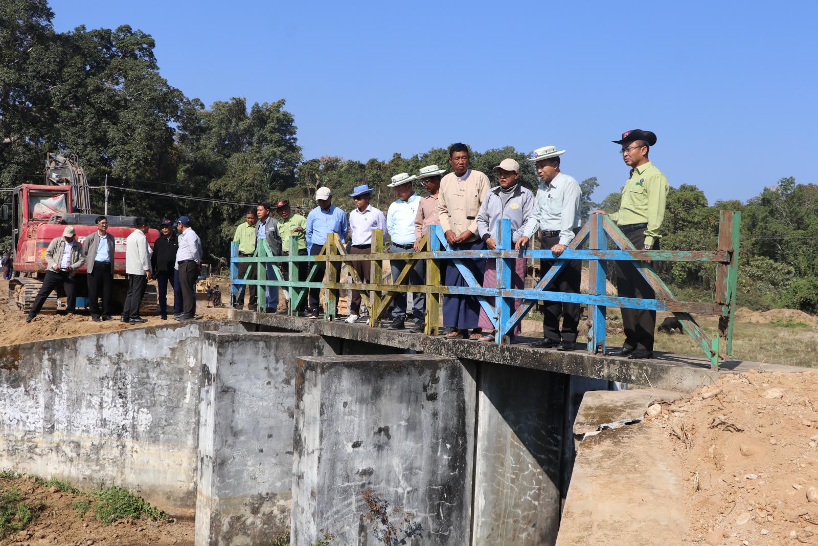 ယင်းနောက် တိုင်းဒေသကြီး ဝန်ကြီးချုပ်နှင့် တာဝန်ရှိသူများသည် ဟုမ္မလင်းမြို့နယ်၊ ခေါင်ခမ်း ကျေးရွာရှိ စိုက်ပျိုးရေးကုန်ထုတ်ထမ်း အရှည် - ၁ မိုင်၊ ၂ ဖာလုံ၊ အကျယ် -၁၂ ပေ၊ ထု ၉ လက်မထု ကျောက်ရောမြေသားလမ်း ခင်းကျင်းပြီးစီးမှုအား သွားရောက်ကြည့်ရှုခဲ့ကြပြီး လိုအပ်သည်များကို တာဝန်ရှိသူများနှင့် ဖြည့်ဆည်းပေါင်းစပ် ဆောင်ရွက်ပေးခဲ့ကြောင်း သိရသည်။