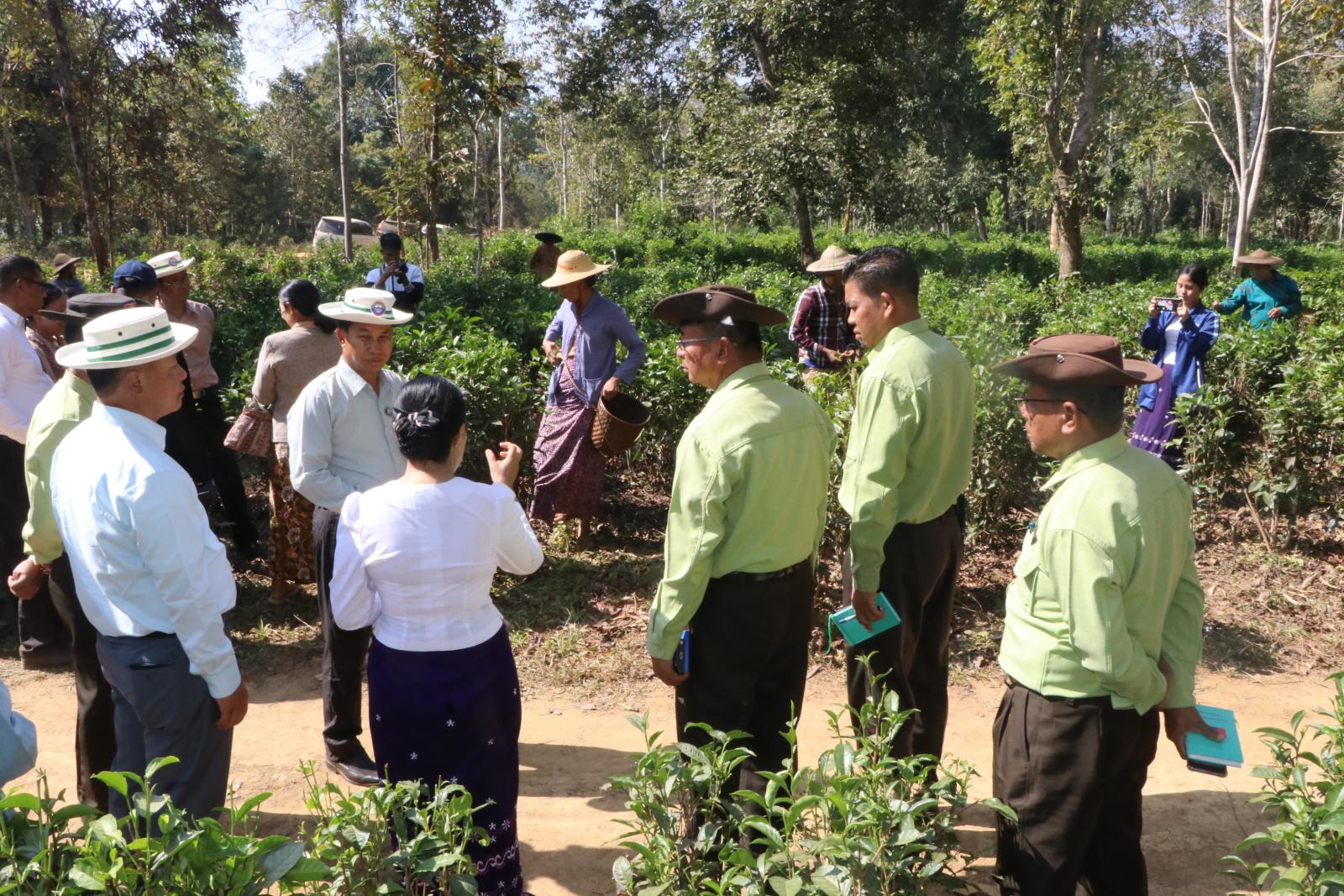 ဆက်လက်၍ တိုင်းဒေသကြီး ဝန်ကြီးချုပ်နှင့် တာဝန်ရှိသူများသည် ဟုမ္မလင်းမြို့နယ်၊ ခေါင်ခမ်းကျေးရွာ တောင်သူ ဒေါ်ရီရီသိန်း စိုက်ပျိုးထားရှိသည့် “အာသန်” မျိုး လက်ဘက်စိုက်ခင်း ၈ ဧကသို့ ရောက်ရှိရာ ဒေသခံတောင်သူများမှ လက်ဘက်ခူးစွတ်နေမှုများအား ကြည့်ရှုခဲ့ကြပြီး ကြပြီး တာဝန်ရှိသူများနှင့်အတူ ဒေသခံတောင်သူများထံ မြတ်ရိပ် စက်များအား ပေးအပ်ခဲ့ကြပြီး လိုအပ်သည်များကို တာဝန်ရှိသူများနှင့် ဖြည့်ဆည်းပေါင်းစပ်ဆောင်ရွက်ပေးခဲ့ပြီး ဒေသခံတောင်သူများအား ရင်းရင်းနှီးနှီး နှုတ်ဆက်ခဲ့ကြသည်။