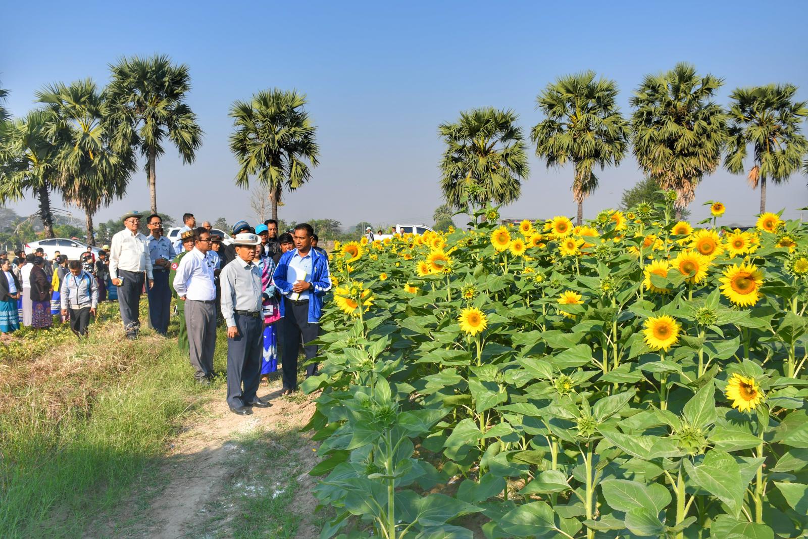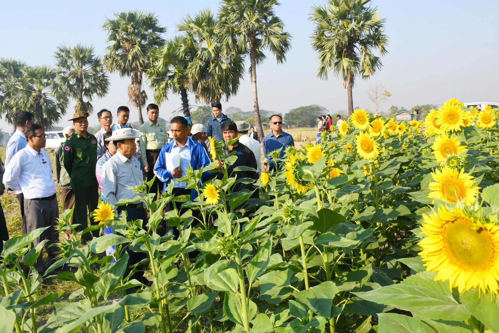 နေပြည်တော်ကောင်စီဥက္ကဋ္ဌ ဦးသန်းထွန်းဦးသည် ယမန်နေ့နံနက်ပိုင်းတွင် နေပြည်တော်ကောင်စီဝင်များ တာဝန်ရှိသူများနှင့်အတူ ပျဉ်းမနားမြို့နယ်၊ သူဌေးကုန်းကျေးရွာသို့ သွားရောက်ပြီး မြို့နယ်သမဝါယမအသင်းစုပိုင် ဘက်စုံသုံးခြံ၌ ရုရှားနေကြာ သုံးမျိုးစပ်(၁၅)ဧက စိုက်ပျိုးထားရှိမှုအား ကြည့်ရှုစစ်ဆေးပြီး တောင်သူများအား မျိုး၊ မြေ၊ ရေ၊ နည်း စိုက်နည်းစနစ်မှန်ကန်စေရေး၊ ပန်းတိုင်အထွက်နှုန်းရရှိရေး၊ သဘာဝမြေဩဇာကို အချိုးကျစွာပေါင်းစပ်အသုံးပြုနိုင်ရေး၊ တောင်သူများအနေဖြင့် သီးနှံများအား ရာသီပြည့်စိုက်ပျိုးနိုင်ရေးတို့ကိုမှာကြားပြီး တာဝန်ရှိသူများမှ အောင်မြင်ဖြစ်ထွန်းအောင်စိုက်ပျိုးရမည့် နည်းလမ်းများနှင့် စိုက်ပျိုးရေရရှိရေး ဆောင်ရွက်ရမည့် နည်းလမ်းများအား ရှင်းလင်းပြောကြားခဲ့သည်။