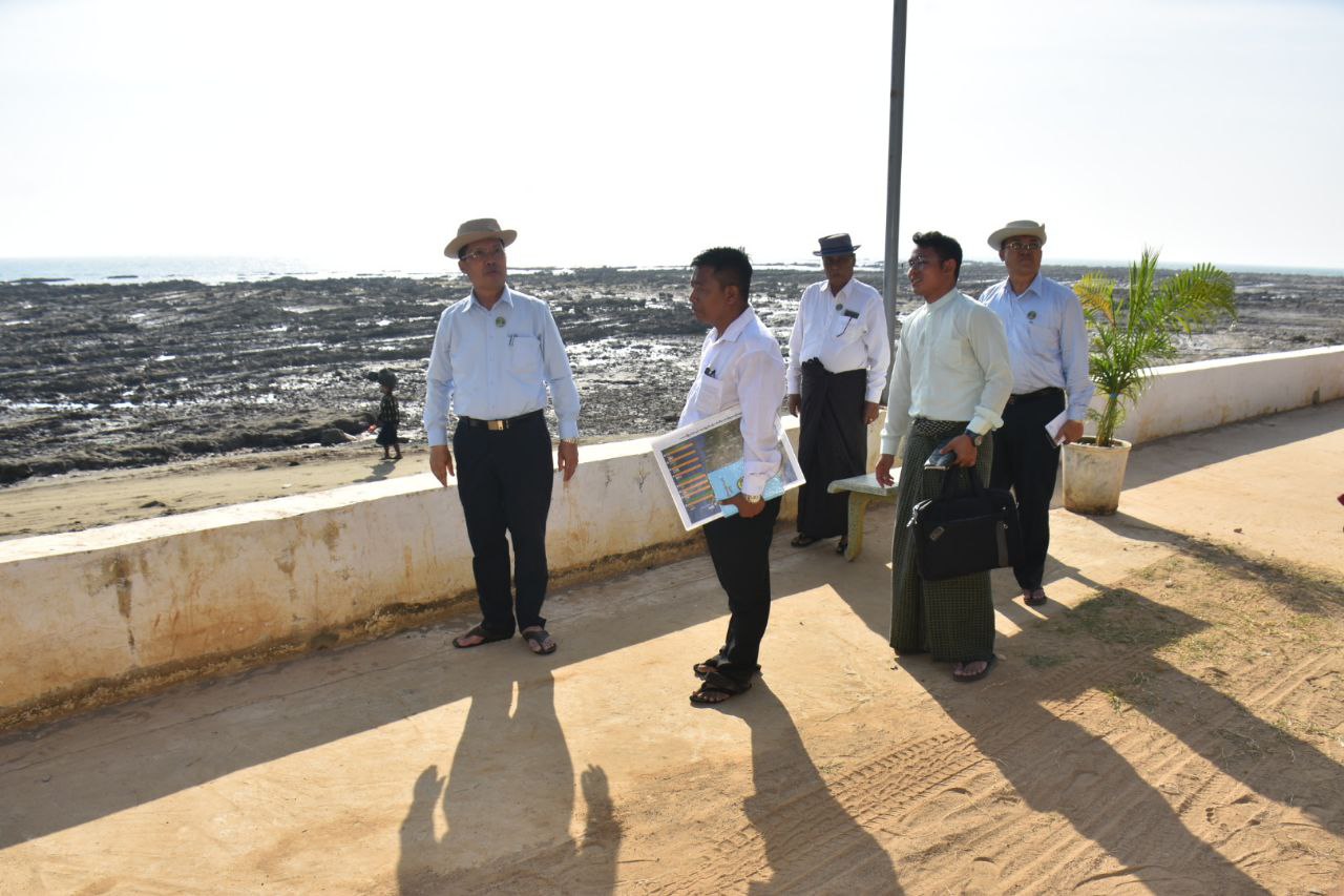 ဧရာဝတီတိုင်းဒေသကြီးဝန်ကြီးချုပ် ဦးတင်မောင်ဝင်းသည် မြတ်မော်တင်စွန်းစေတီတော် ကုန်းမြေအောက်ခြေအား ပင်လယ်ရေလှိုင်းရိုက်ခတ်မှုမှကာကွယ်ရန် ဆောင်ရွက်ထားသည့် ကျောက်စီလှိုင်းကာအား ယခုလ (၁၅) ရက်နေ့ မွန်းလွဲပိုင်းက သွားရောက်ကြည့်ရှုစစ်ဆေးခဲ့ရာ ရေအရင်းအမြစ်နှင့် မြစ်ချောင်းများဖွံ့ဖြိုးတိုးတက်ရေးဦးစီးဌာန၊ တိုင်းဒေသကြီးဦးစီးမှူးက ကျောက်စီလှိုင်းကာ အလျား ၄၅၇ ပေ ဆောင်ရွက်ထားရှိမှုအခြေအနေနှင့် ရေဆင်းမြောင်းများ ဆောင်ရွက်သင့်သည့်အခြေအနေများအား ရှင်းလင်းတင်ပြရာ ဝန်ကြီးချုပ်က စေတီတော်ကြီးတည်ထားရာကုန်းမြေအား ပင်လယ်ရေလှိုင်းရိုက်ခတ်မှုမှကာကွယ်ရန် လိုအပ်သည့်နေရာများတွင် ဆက်လက်ဆောင်ရွက်ရန် မှာကြားသည်။