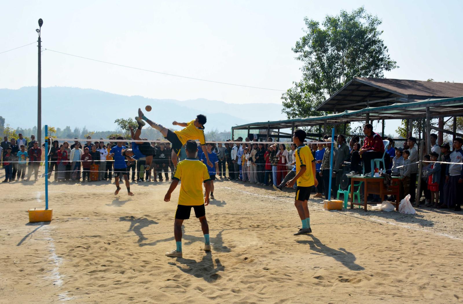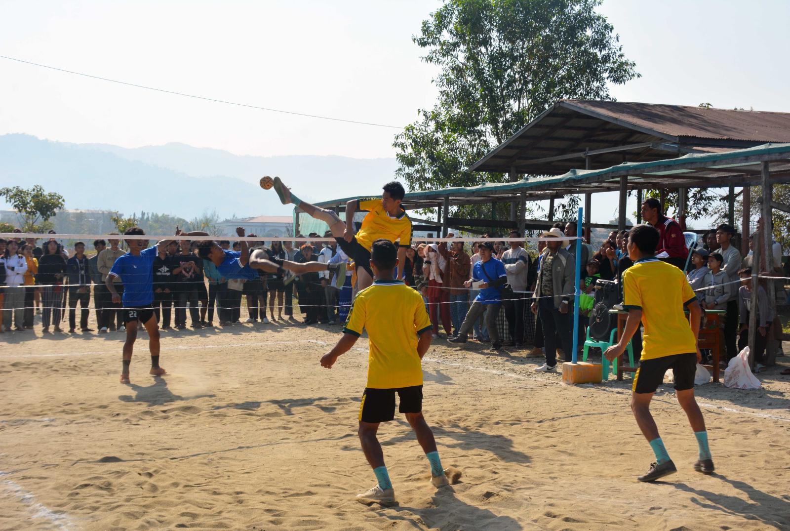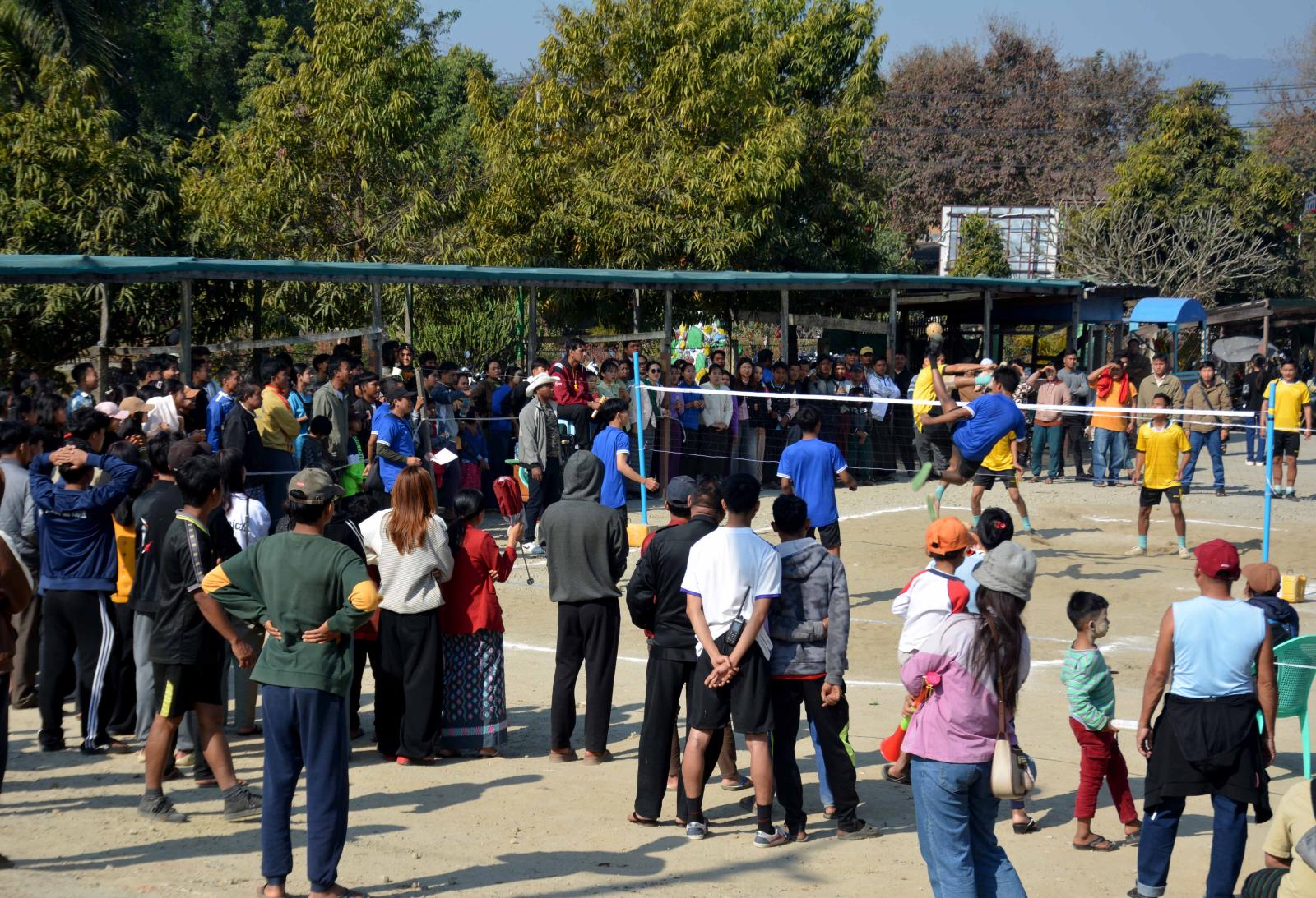 ကချင်ပြည်နယ် မိုးညှင်းခရိုင် မိုးညှင်းမြို့တွင် (၇၉)နှစ်မြောက် ပြည်ထောင်စုနေ့ အထိမ်းအမှတ် ခရိုင်/မြို့နယ်ဌာနဆိုင်ရာများမှ သုံးယောက်တွဲ အမျိုးသားပိုက်ကျော်ခြင်းပြိုင်ပွဲ ဗိုလ်လုပွဲစဉ်နှင့် ဆုများချီးမြှင့်ပွဲကို ယနေ့ နံနက်ပိုင်းက စုပေါင်းရုံးရှိ ကွင်းပြင်၌ ကျင်းပသည်။