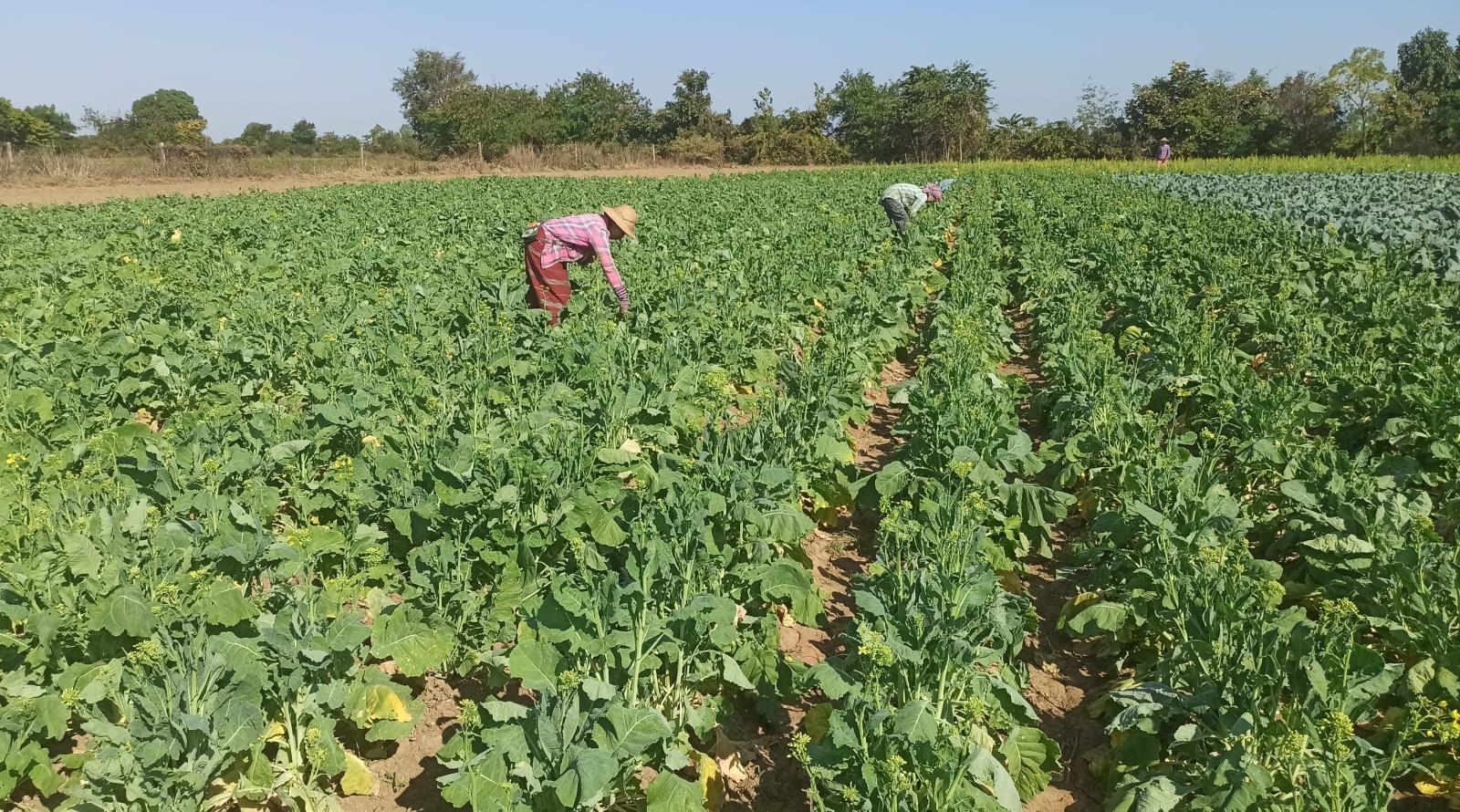 “ကျွန်တော်တို့ကျေးရွာအနီး ချောင်းဘေးတစ်လျှောက်မှာ စပါးရိတ်သိမ်းပြီး ရေတင်စနစ်နဲ့ ကိုက်လန်၊ ကန့်လန့်၊ ပန်းမုန်လာ၊ မုံလာထုတ်၊ မုံညှင်း၊ ခရမ်း၊ ခရမ်းချဉ်၊ ကြက်သွန်နီ၊ ကြက်သွန်ဖြူ၊ နံနံ၊ ရုံးပတီ၊ ငရုတ် စတဲ့သီးနှံများကို စိုက်ပျိုးကြပါတယ်။ သီးနှံပေါ်ချိန်မိသားစုဝင်ငွေရရှိပြီး တိုးချဲ့စိုက်ပျိုးဖို့ပြင်ဆင်ထားပါတယ်” ဟု ရှမ်းစုကျေးရွာတောင်သူ ဦးအေးနိုင်က ပြောသည်။