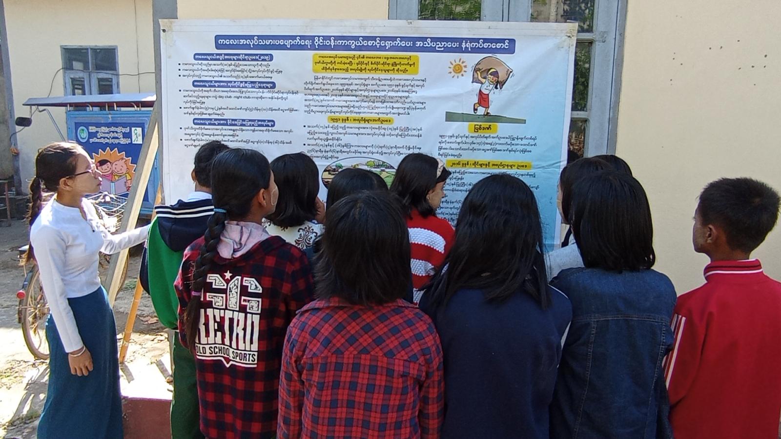 ပဲခူးတိုင်းဒေသကြီး၊ နတ်တလင်းခရိုင်၊ သဲကုန်းမြို့နယ် လူထုအခြေပြုဗဟိုဌာန (Community Centre)၌ ယနေ့နံနက်(၉) နာရီအချိန်က ကလေးအလုပ်သမားပပျောက်ရေး အသိပညာပေး နံရံကပ်စာစောင်ပြသခြင်း ဆောင်ရွက်ခဲ့သည်။