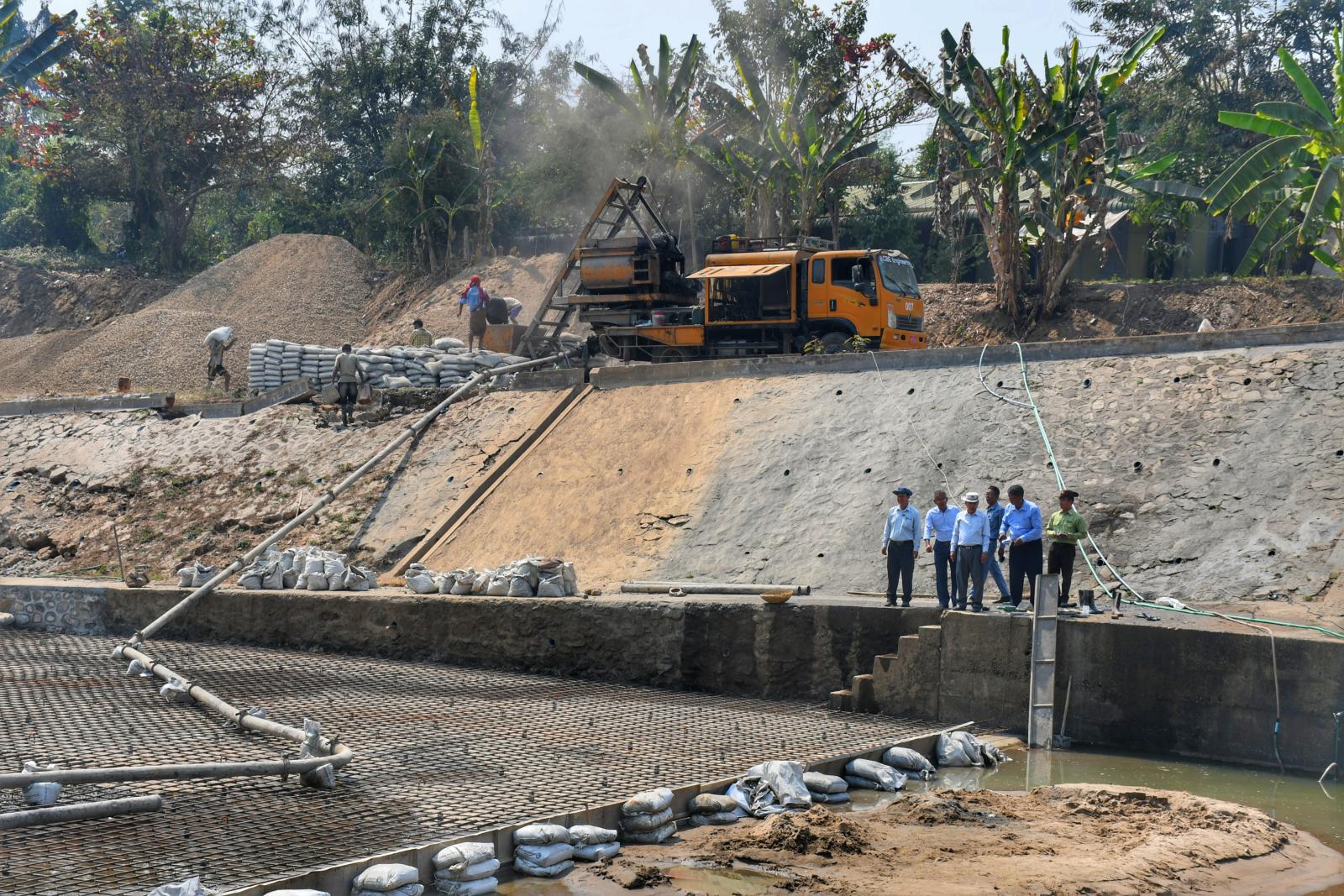 ဆက်လက်၍ နေပြည်တော်ကောင်စီဥက္ကဋ္ဌသည် ငလျင်ဘေးကြောင့်ထိခိုက်ပျက်စီးခဲ့သော ချောင်းမကြီးရေလှောင်တမံ့ပြုပြင်နေမှုကို ကြည့်ရှုစစ်ဆေးရာ တာဝန်ရှိသူများမှ ရေစစ်ကျောက်ရိုးပြုပြင်ပြီးစီးမှု၊ ပျက်စီးသွားသော တမံမြေသား(၆၁၃၄၈)ကျင်းဖယ်ထုတ်ပြီးစီးမှု၊ တမံမြေသားအသစ် (၈၀၄၆၃) ကျင်းဖို့ကြိတ်ပြီးစီးနေမှု၊ လှိုင်းကာကျောက်များ ဆောင်ရွက်နေမှုနှင့် တမံမြေသားဖို့ကြိတ်ရန်ကျန်ရှိသည့် (၂၅၃၇)ကျင်းကို ယခုလကုန်တွင် ပြီးစီးအောင် ဆောင်ရွက်သွားမည့်အခြေအနေများကို ရှင်းလင်းတင်ပြရာ နေပြည်တော်ကောင်စီဥက္ကဋ္ဌက လုပ်ငန်းများ အရည်အသွေးပြည့်မီစွာဖြင့် အမြန်ပြီးစီးအောင် ဆောင်ရွက်ရန်၊ တမံ၏အင်္ဂါရပ်နှင့်အညီ ထည့်သွင်းဆောင်ရွက်ရန်၊ လိုအပ်သော ရေစုမြောင်း၊ ရေဆင်းမြောင်း၊ လှိုင်းကာကျောက်၊ Parapet များကိုပါ တစ်ပါတည်းပြီးစီးအောင်ဆောင်ရွက်ရန် မှာကြားခဲ့သည်။