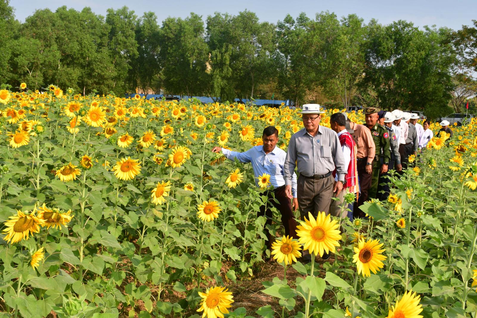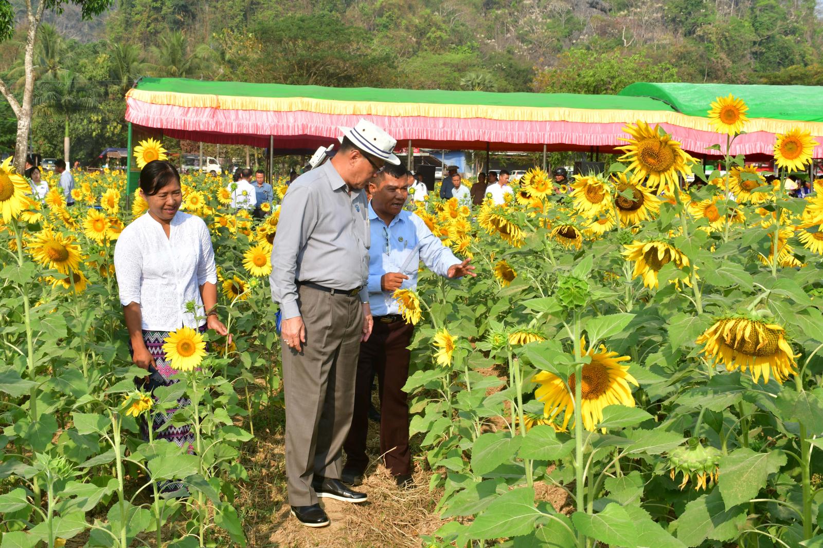 ယင်းနောက် ပြည်နယ်ဝန်ကြီးချုပ်နှင့်တာဝန်ရှိသူများ၊ ကျေးရွာ(၁၀)ရွာမှ တက်ရောက်လာသော နေကြာစိုက်တောင်သူများက ဘားအံမြို့ အမှတ်(၈)ရပ်ကွက်၊ ထောင်ဝိကွင်းရှိ အောင်မြင်ဖြစ်ထွန်းနေသော ဆောင်းနေကြာ အထွက်နှုန်းတိုးတက်ရေး စံပြကွက်(၆၈)ဧကအား ကြည့်ရှုအားပေးသည်။ စိုက်ပျိုးရေးဦးစီးဌာန ပြည်နယ်ဦးစီးမှူးက နေကြာ သီးနှံ (၁၅)ရက်သားတွင် အပင်သားခွဲခြင်းလုပ်ငန်းဆောင်ရွက်မှု၊ (၄၀)ရက်သားတွင် မြေဩဇာကျွေးဘောင်တင်ခြင်း လုပ်ငန်းဆောင်ရွက်မှုအခြေအနေများကို ရှင်းလင်းတင်ပြရာ ပြည်နယ်ဝန်ကြီးချုပ်က လိုအပ်သည်များပေါင်းစပ်ညှိနှိုင်း ဖြည့်ဆည်းဆောင်ရွက်ပေးသည်။