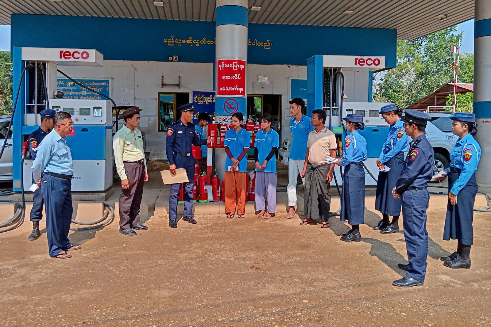 မကွေးတိုင်းဒေသကြီး ရေနံချောင်းမြို့နယ်၌ ပွင့်လင်းရာသီရောက်ရှိလာချိန်တွင် မီးလောင်မှု၊ မီးလန့်မှုမဖြစ်ပွားစေရေး စက်သုံးဆီအရောင်းဆိုင်များအား မီးဘေးလုံခြုံရေးစစ်ဆေးခြင်းကို ယနေ့နံနက်ပိုင်းက မြို့နယ်မီးသတ်ဦးစီးဌာနနှင့် ဌာနဆိုင်ရာတာဝန်ရှိသူများက ကွင်းဆင်းစစ်ဆေးသည်။