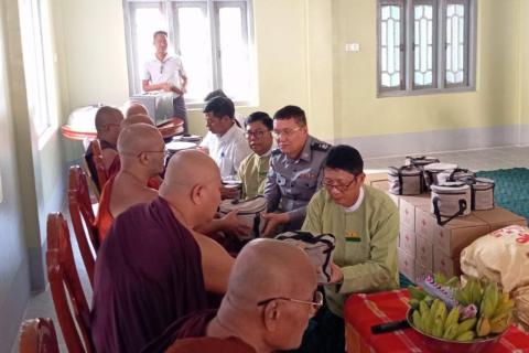 ပျော်ဘွယ်မြို့နယ်ရှိ ငလျင်ဘေးသင့်ဘုန်းတော်ကြီးကျောင်းများနှင့် သီလရှင်ကျောင်းများအား လှူဖွယ်ပစ္စည်းများ ဆက်ကပ်လှူဒါန်း