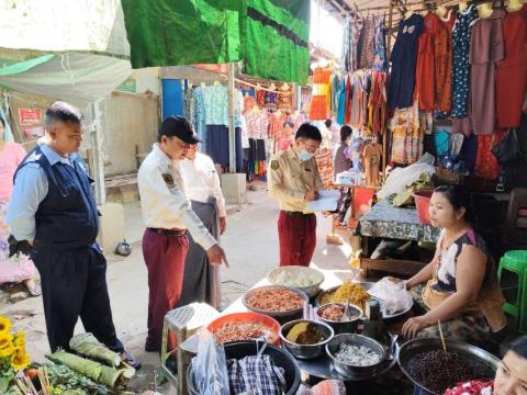 မော်လမြိုင်မြို့၌ တားမြစ်ဓာတုပစ္စည်းပါဝင်သည့် စားသာက်ကုန်ပစ္စည်းများ ဈေးကွက်အတွင်း ရောင်းချမှုမရှိစေရေး ရွေ့လျားဓါတ်ခွဲယာဉ်ဖြင့် ဈေးကွက်ကွင်းဆင်းစစ်ဆေး
