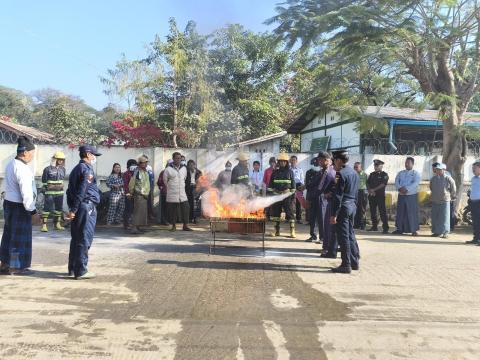 ကလေးဝမြို့ မြို့မစျေးကြီး၌ မီးဘေးအန္တရာယ် ကြိုတင်ကာကွယ်ရေး သရုပ်ပြလေ့ကျင့်