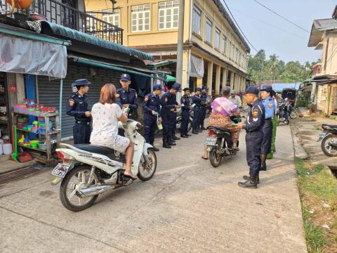 တနင်္သာရီတိုင်းဒေသကြီး ဘုတ်ပြင်းခရိုင် ကရသူရိမြို့၌ မီးဘေးအန္တရာယ်ကြိုတင်ကာကွယ်ရေး လက်ကမ်းစာစောင်များဖြန့်ဝေခြင်းနှင့် 191 စတေကာများကပ်ခြင်းဖြင့် အသိပညာပေးဆောင်ရွက်မှုကို ဖေဖော်ဝါရီ ၁၈ရက် နံနက် ၈နာရီက မြို့ပေါ်ရပ်ကွက်များတွင်ဆောင်ရွက်သည်။