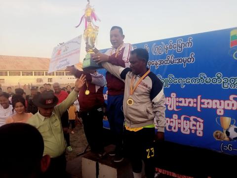 ဒိုက်ဦးမြို့နယ် စီမံခန့်ခွဲရေးနှင့်အုပ်ချုပ်ရေးကော်မတီဥက္ကဋ္ဌဖလား ရပ်ကွက်/ကျေးရွာပေါင်းစုံ အမျိုးသား(အလွတ်တန်း) ဘောလုံးပြိုင်ပွဲ ဗိုလ်လုပွဲအခမ်းအနားကို ယမန်နေ့ မွန်းလွဲ ၃ နာရီကမြို့နယ် အားကစားကွင်းအတွင်းတွင် ကျင်းပပြုလုပ်သည်။