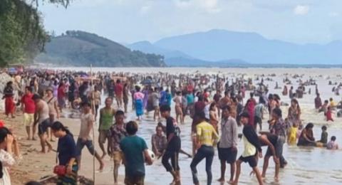 မွန်ပြည်နယ်၊ မော်လမြိုင်ခရိုင် သံဖြူဇရပ်မြို့နယ် စက်စဲကမ်းခြေ၌ အနယ်နယ်အရပ်ရပ်မှ အပန်းဖြေရေကစားသူများဖြင့် အထူးစည်ကားလျက်ရှိသည်။