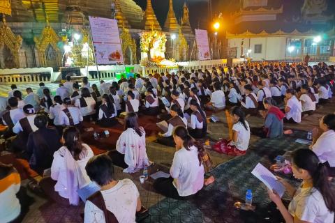 ကမ္ဘာ့ငြိမ်းချမ်းရေးလမ်းလျှောက်အဖွဲ့ (Walk For Peace) နှင့်အတူ သထုံမြို့မှပြည်သူများ သုံးနာရီကြာ အသံမစဲမေတ္တာပို့ ပူဇော်ပွဲပြုလုပ်